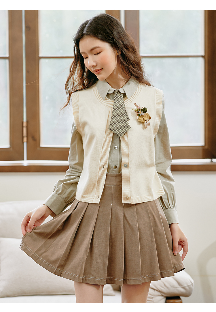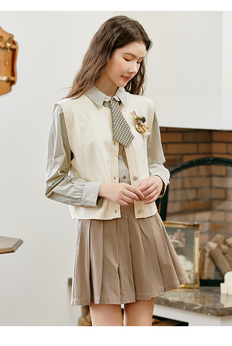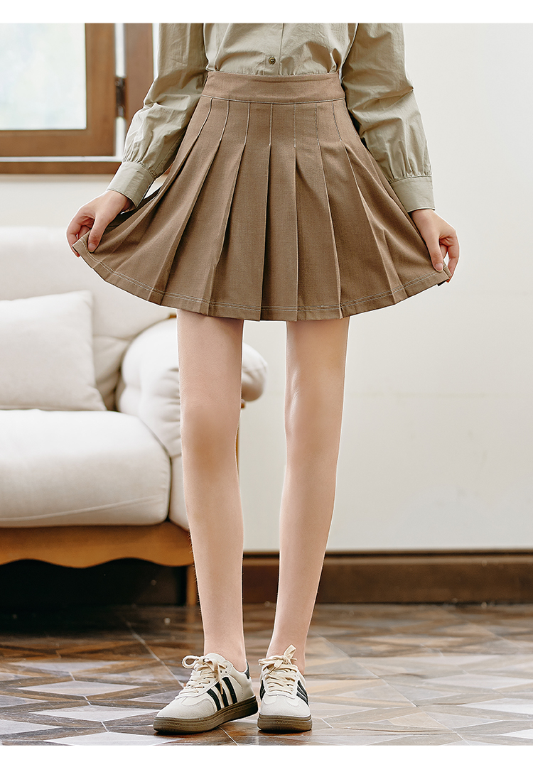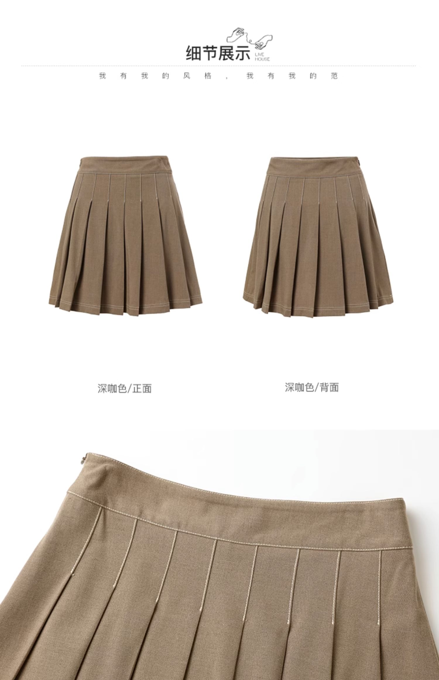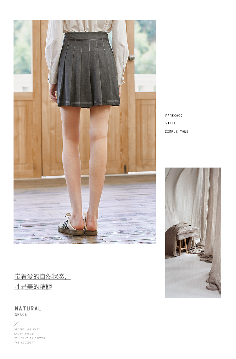 Famecoco范可儿学院风减龄百褶短裙女士秋季a字高腰短款半身裙F225HA010