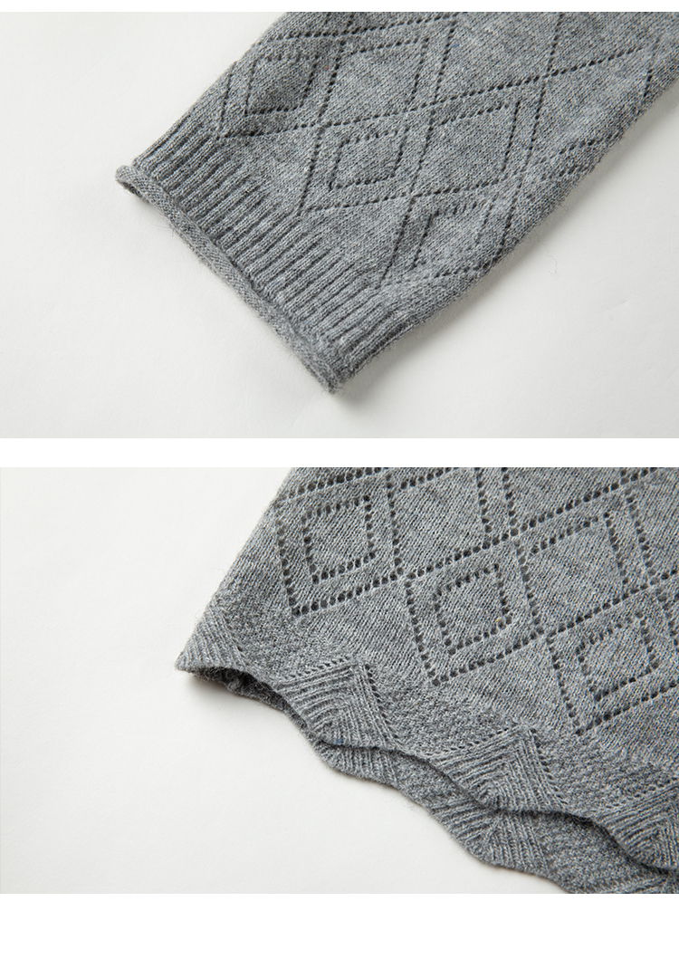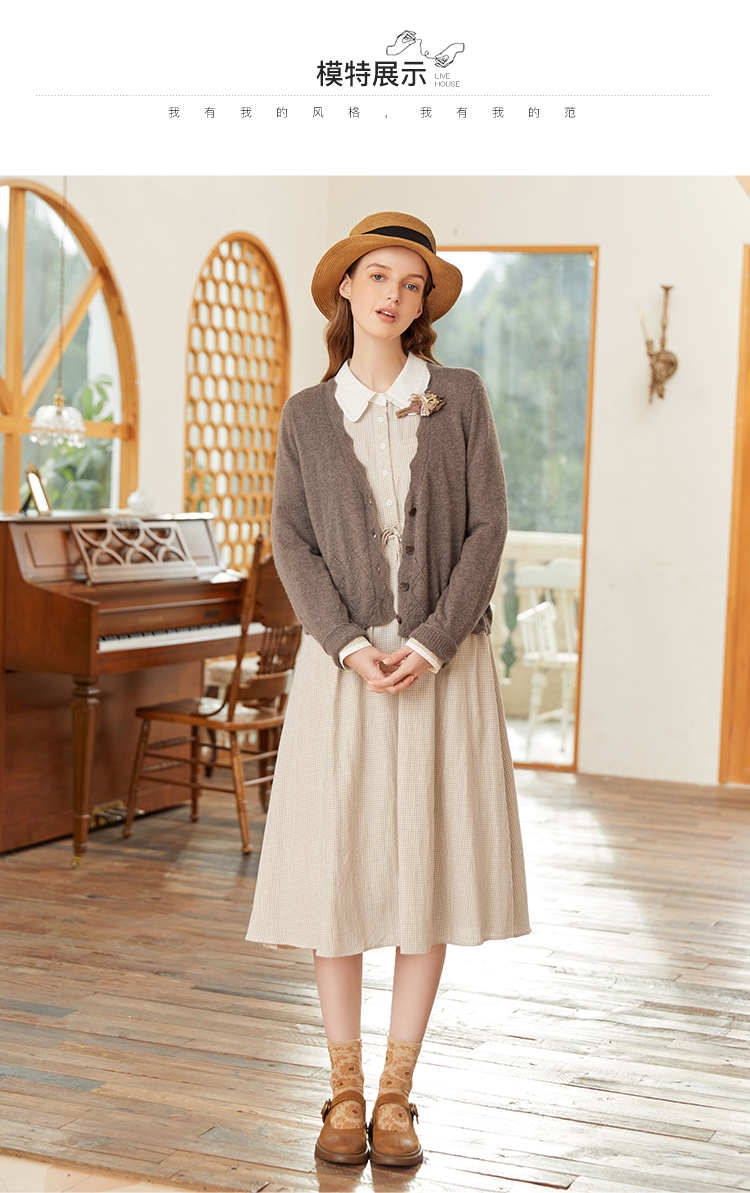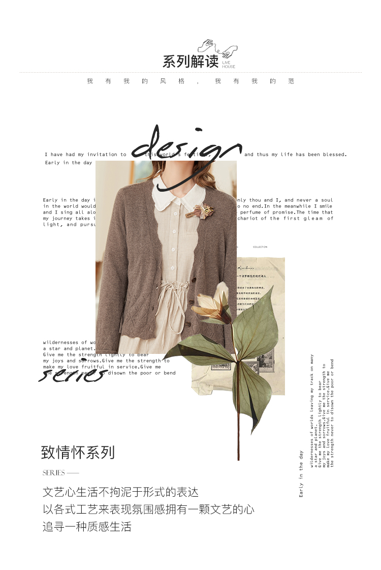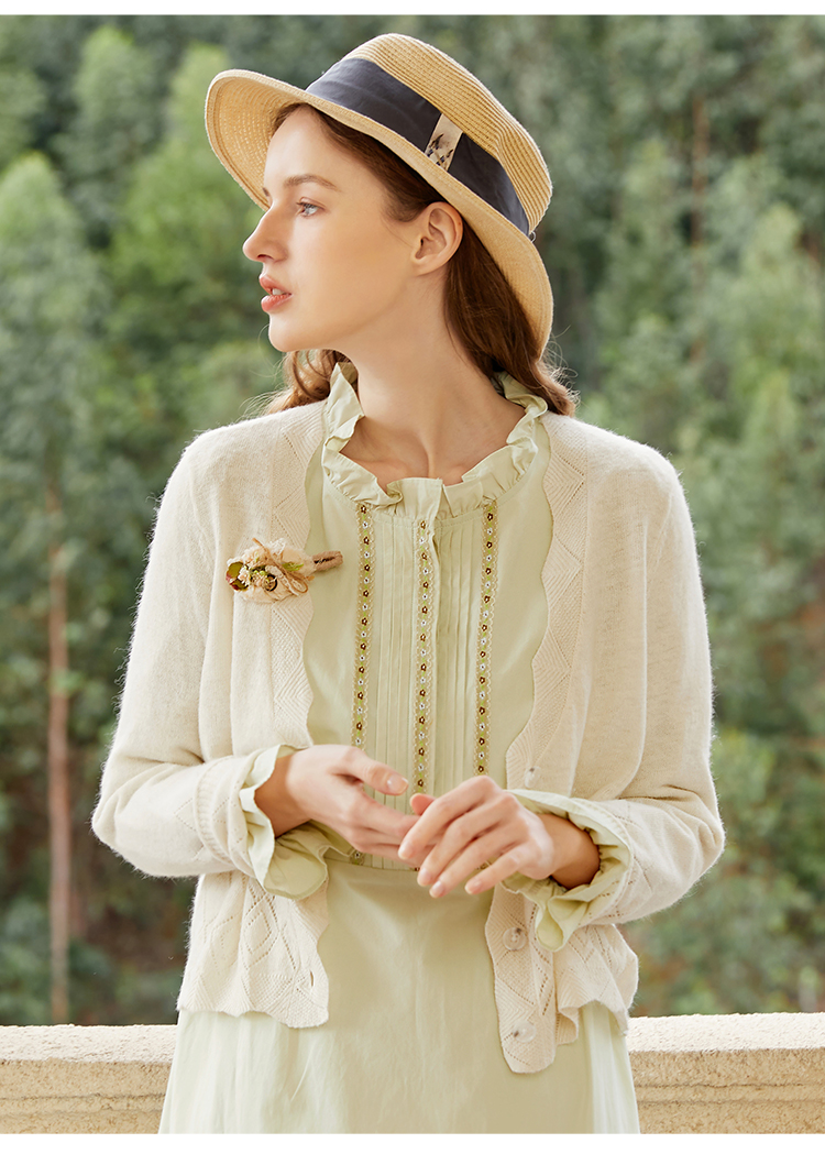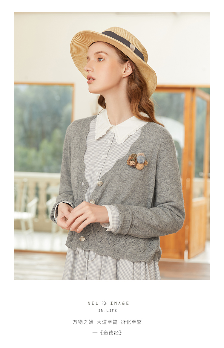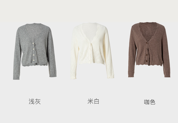 Famecoco范可儿V领针织开衫外套女春秋款短款镂空羊毛衫