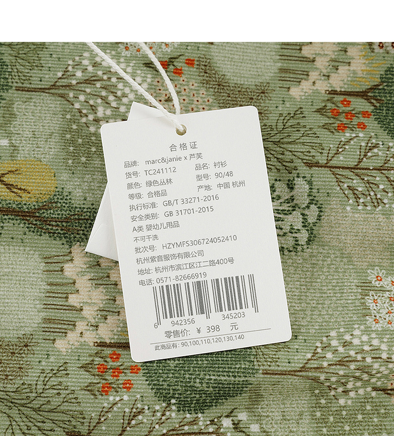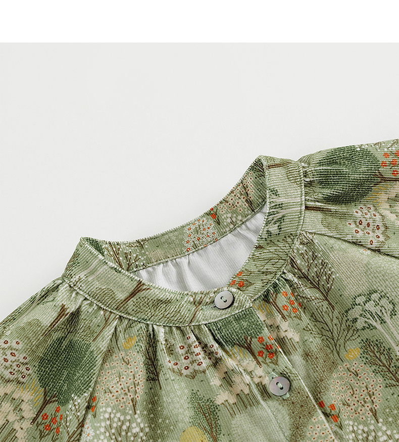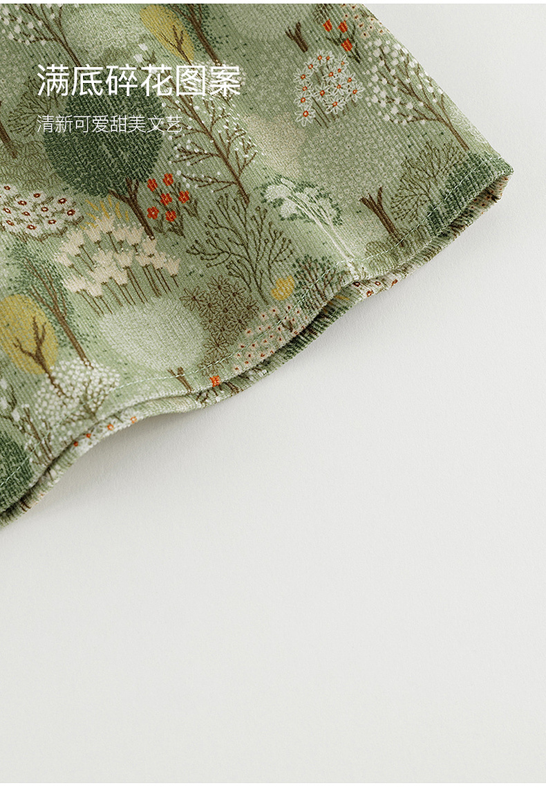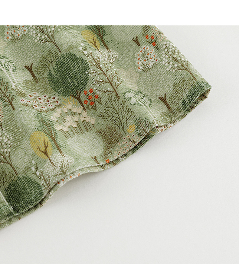 马克珍妮女童绿色丛林灯芯绒衬衫儿童满印衬衣上衣秋装新款241112
