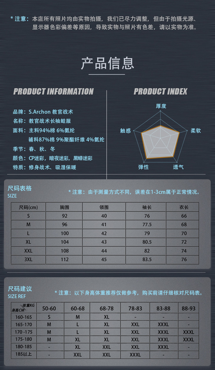 战术类服装尺码偏大,请按尺码表推荐购买,或咨询客服,感谢支持!
