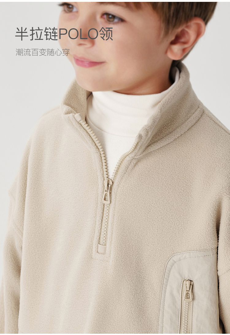 马克珍妮男童山系户外摇粒绒立领卫衣儿童外套2024秋冬新款241057