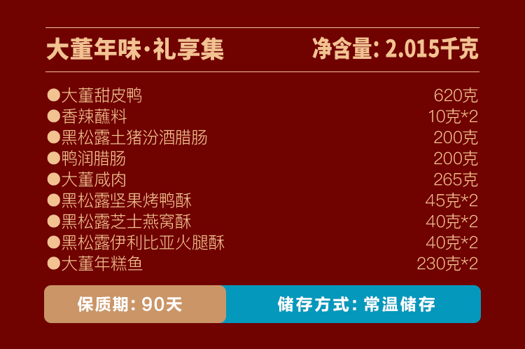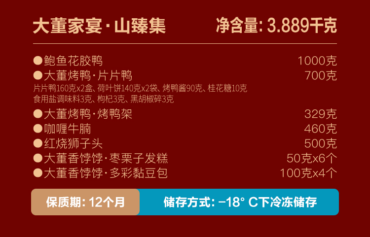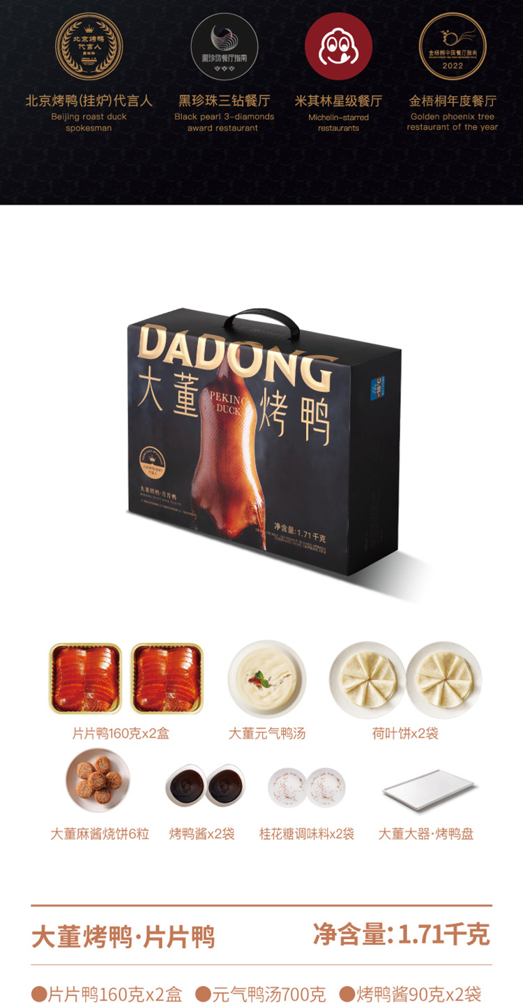 【汇总SKU】大董 烤鸭 董到家 烤鸭 片片鸭 礼盒装 礼享集 鲍鱼宴 海参宴 佛跳墙 送礼