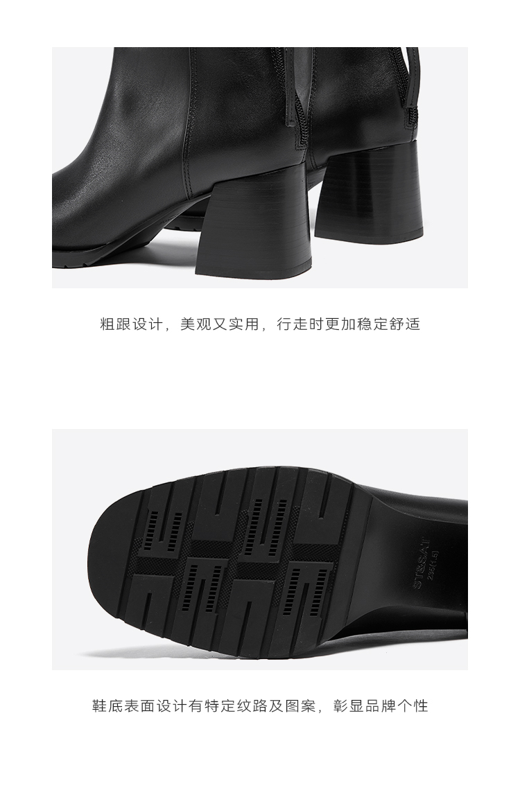 星期六通勤简约保暖加绒舒适粗跟短靴SSC4118408