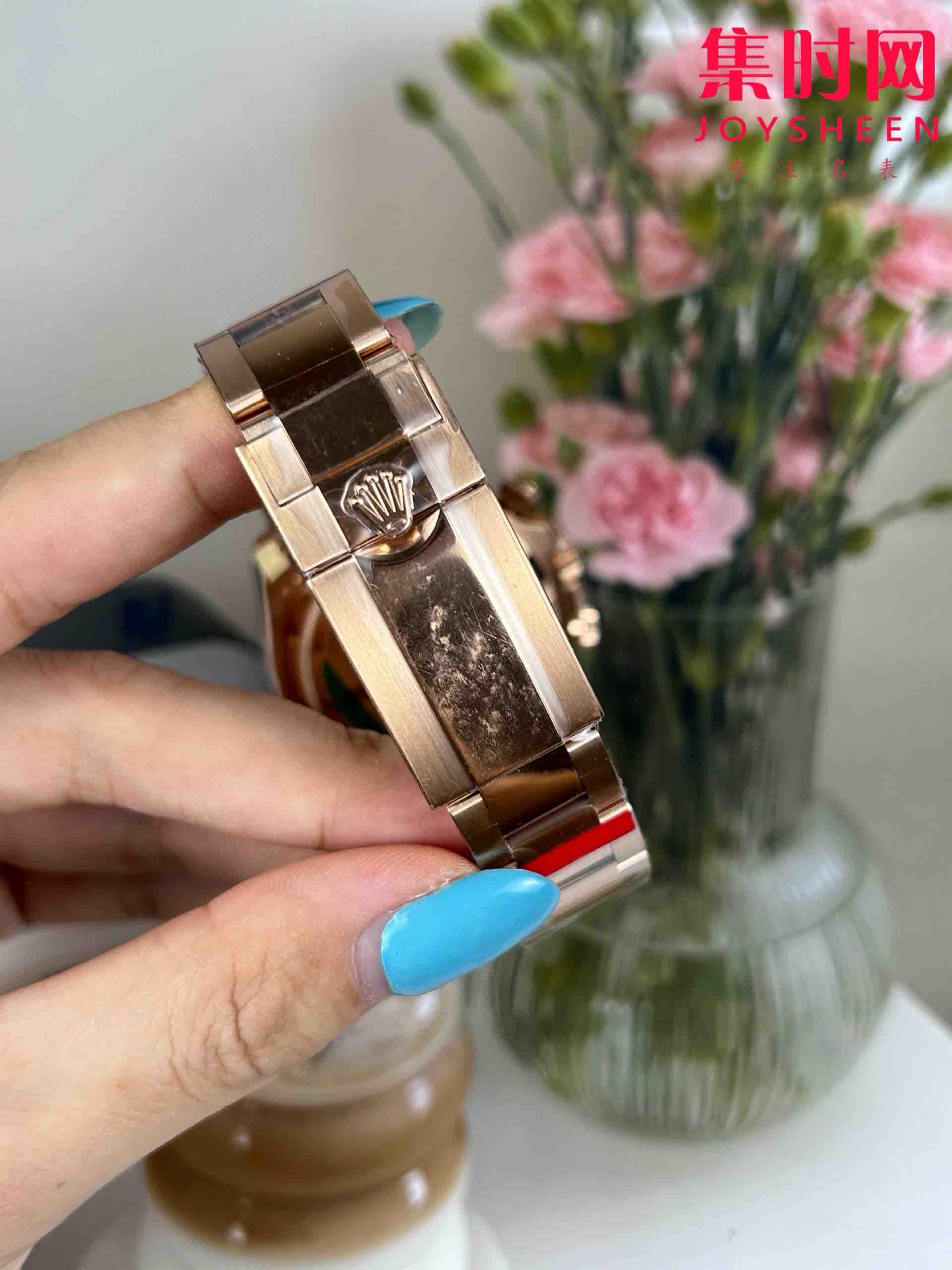 六点位增加皇冠标志,表壳与表带的工艺提升,表耳曲线优化,正品迪通拿的表壳设计以流畅线条著称(如蚝式表壳的狐形表耳)通过强化曲线效果,更接近原版的佩戴舒适度!