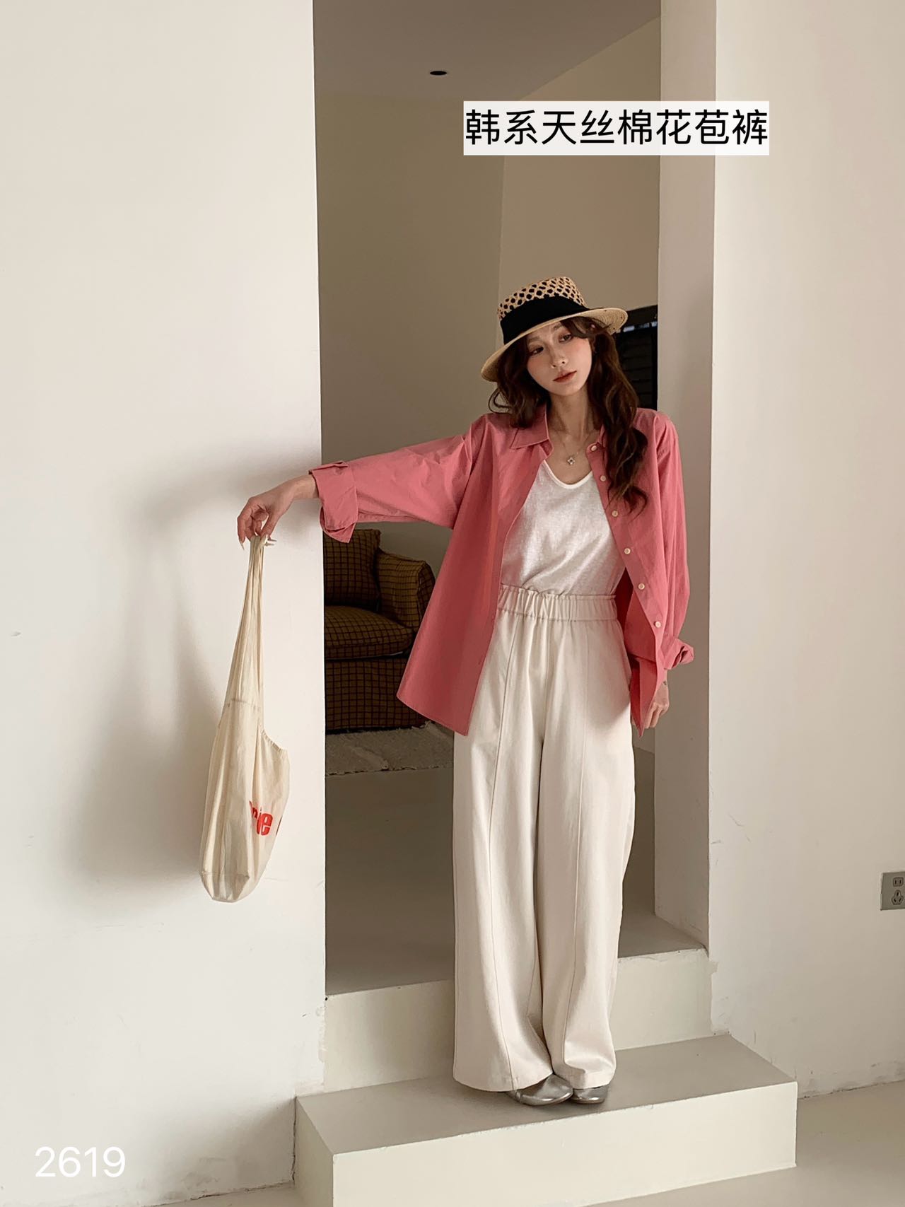 直筒裤型完美包容梨形身材,松弛有度,既显气质又不失温柔。