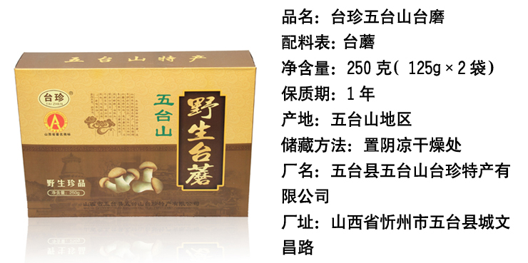 台珍野生台蘑250g/盒 125g*2袋/箱