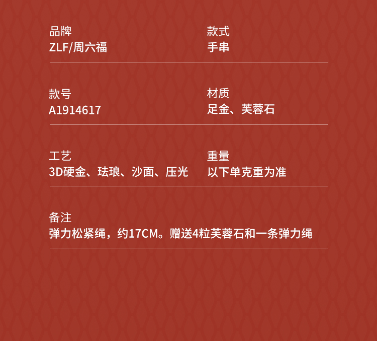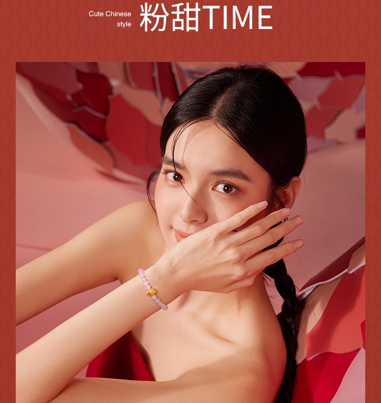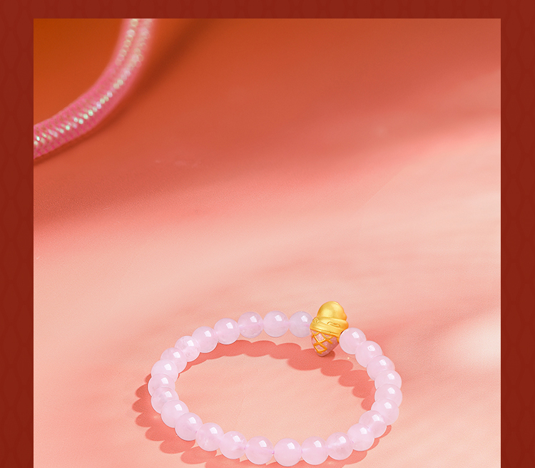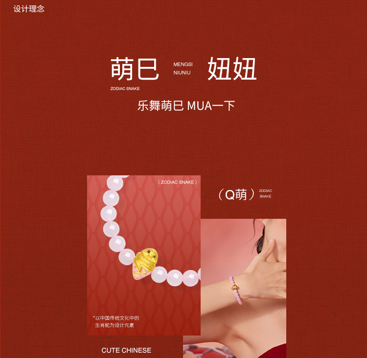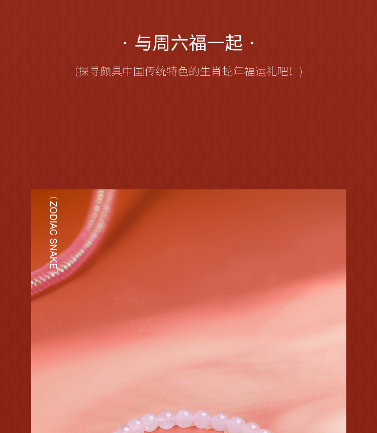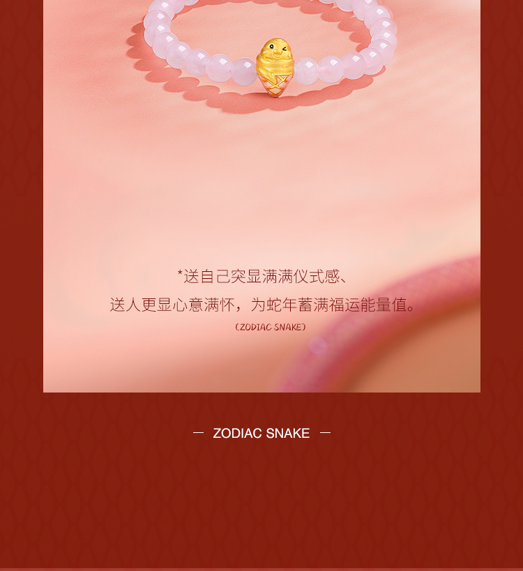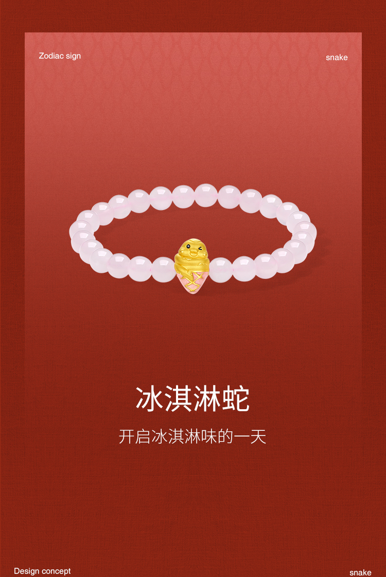 周六福黄金手串女3d硬金定价冰淇淋小金蛇芙蓉石手链生肖蛇本命年