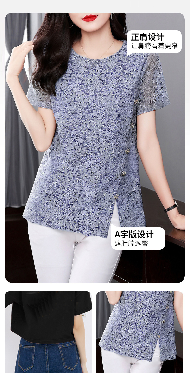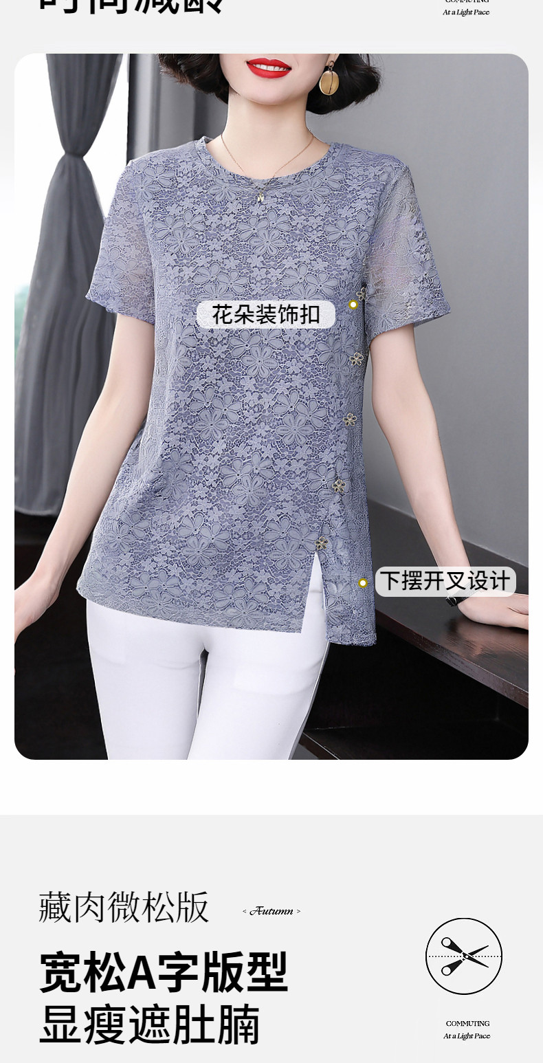 短袖蕾丝上衣女2026年夏季新款大码女装女士t恤宽松漂亮小衫高级