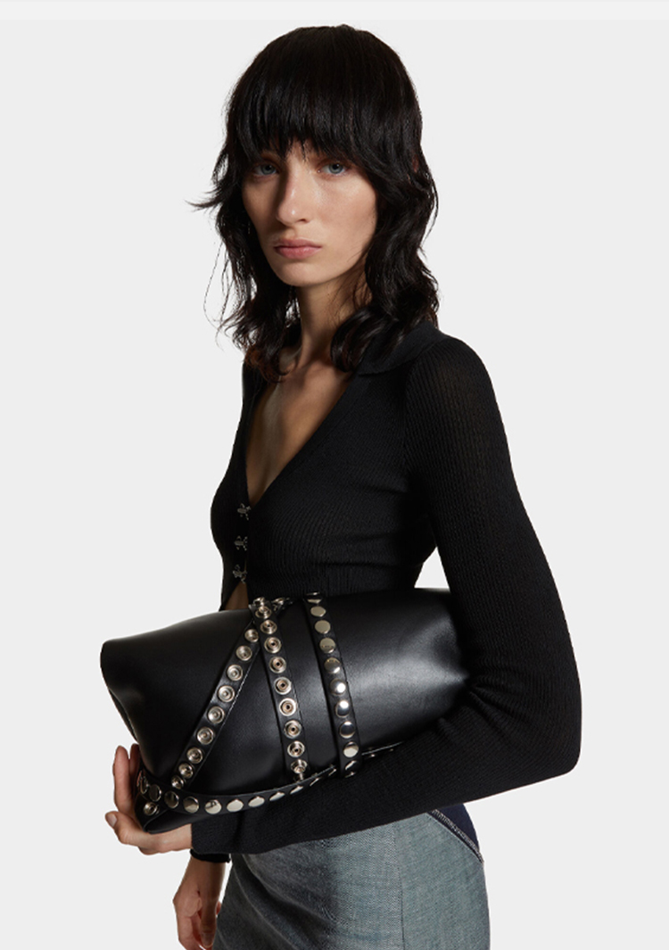 DSQUARED2 女士满饰铆钉手拿包 黑色 CLW0041 18908301 2124
