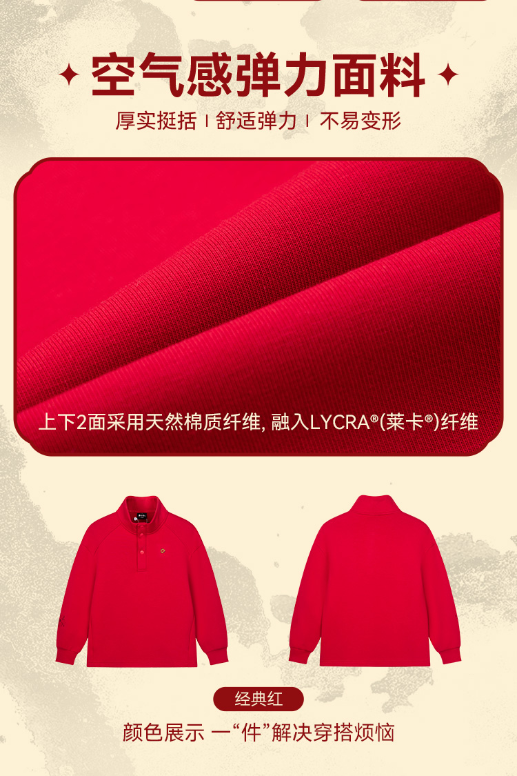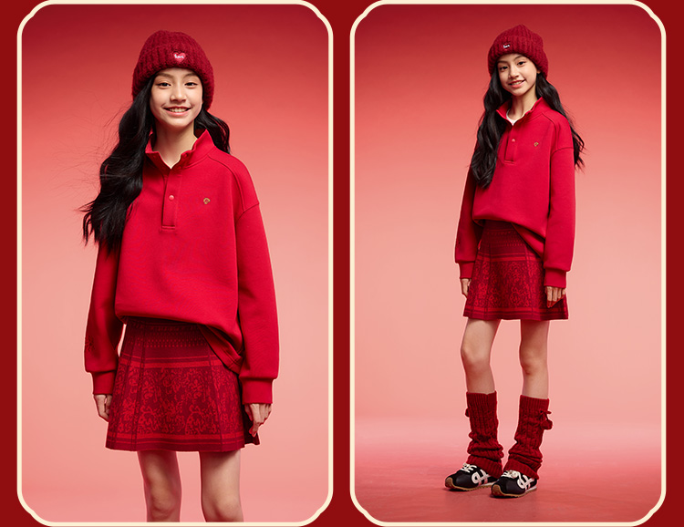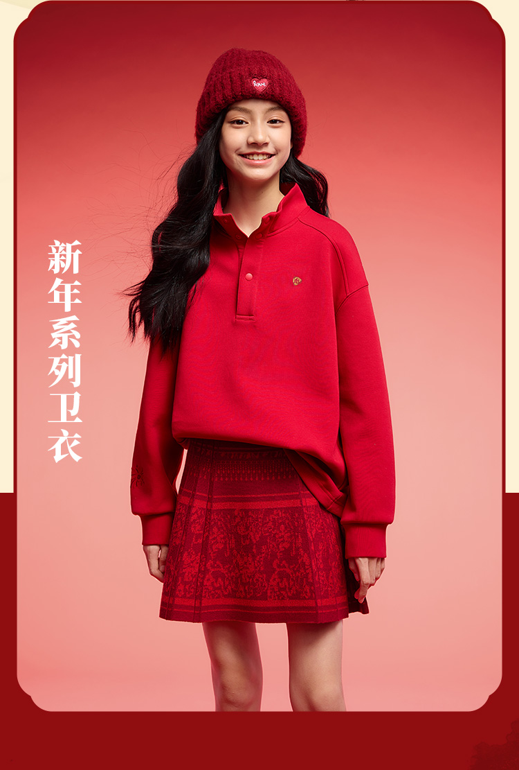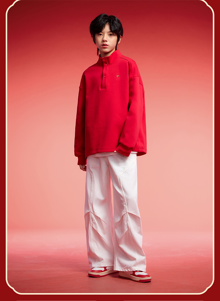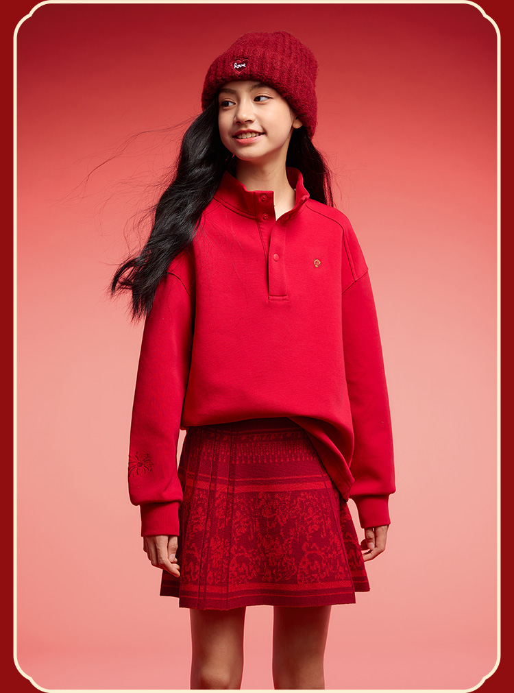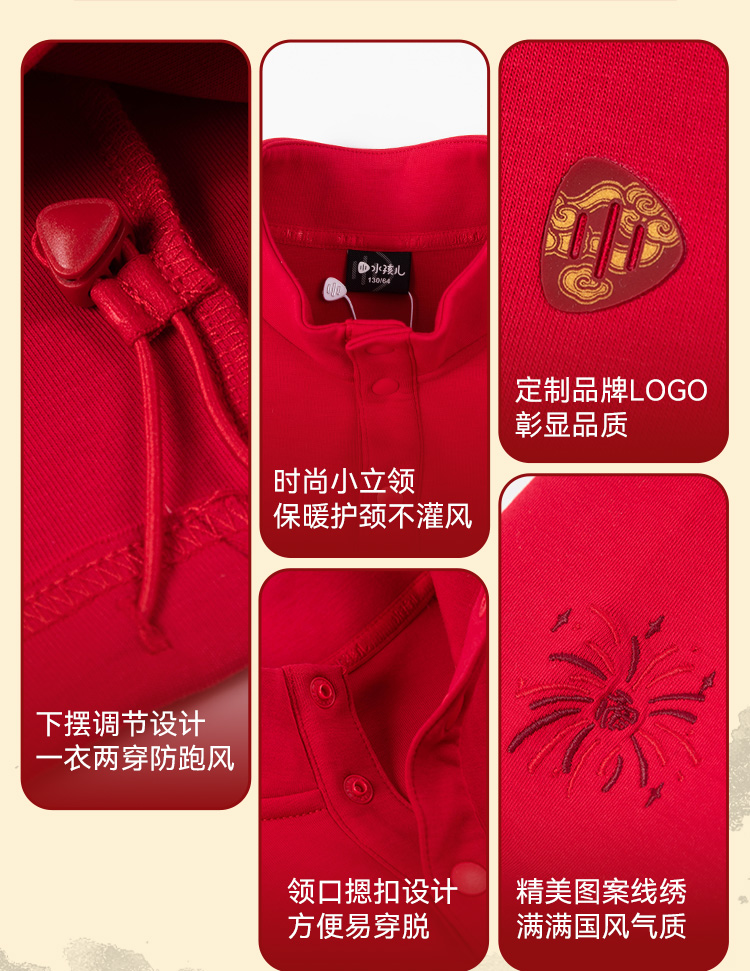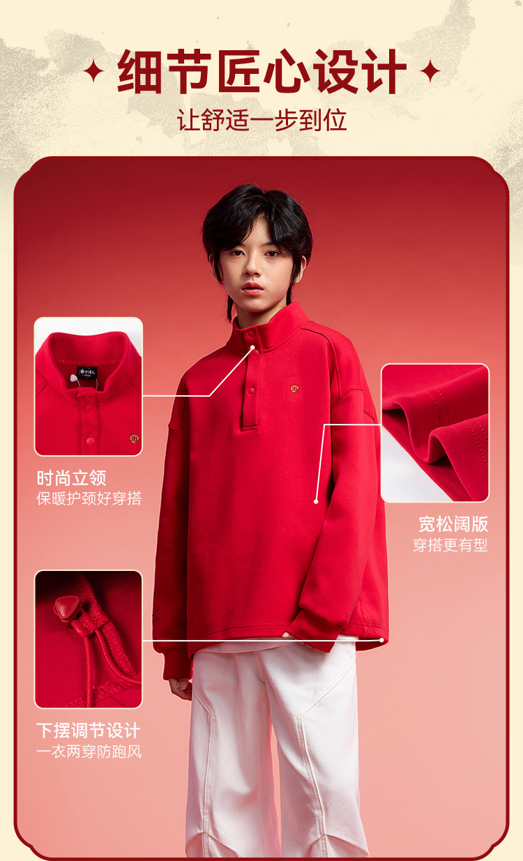 【新年装】水孩儿儿童国风卫衣2026春季新款男女童红色立领上衣
