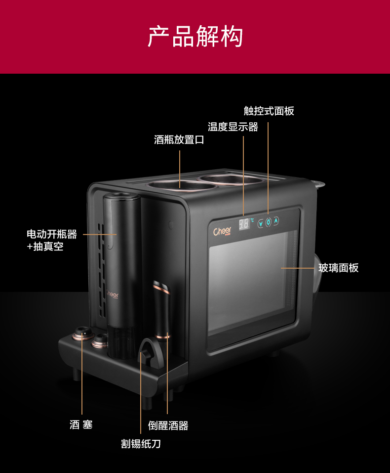 Cheer启尔一体机红酒酒柜可挂杯子红酒葡萄酒柜酒窖级恒温恒湿