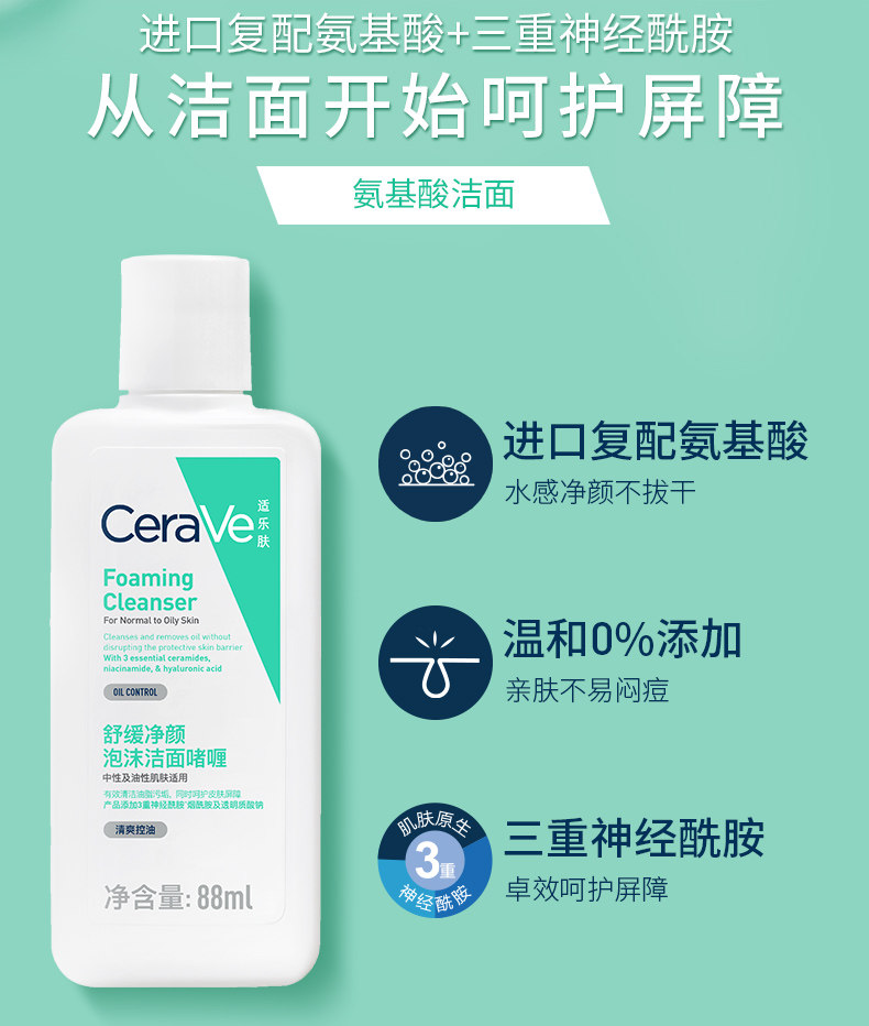 CeraVe适乐肤 舒缓净颜泡沫洁面啫喱88ml