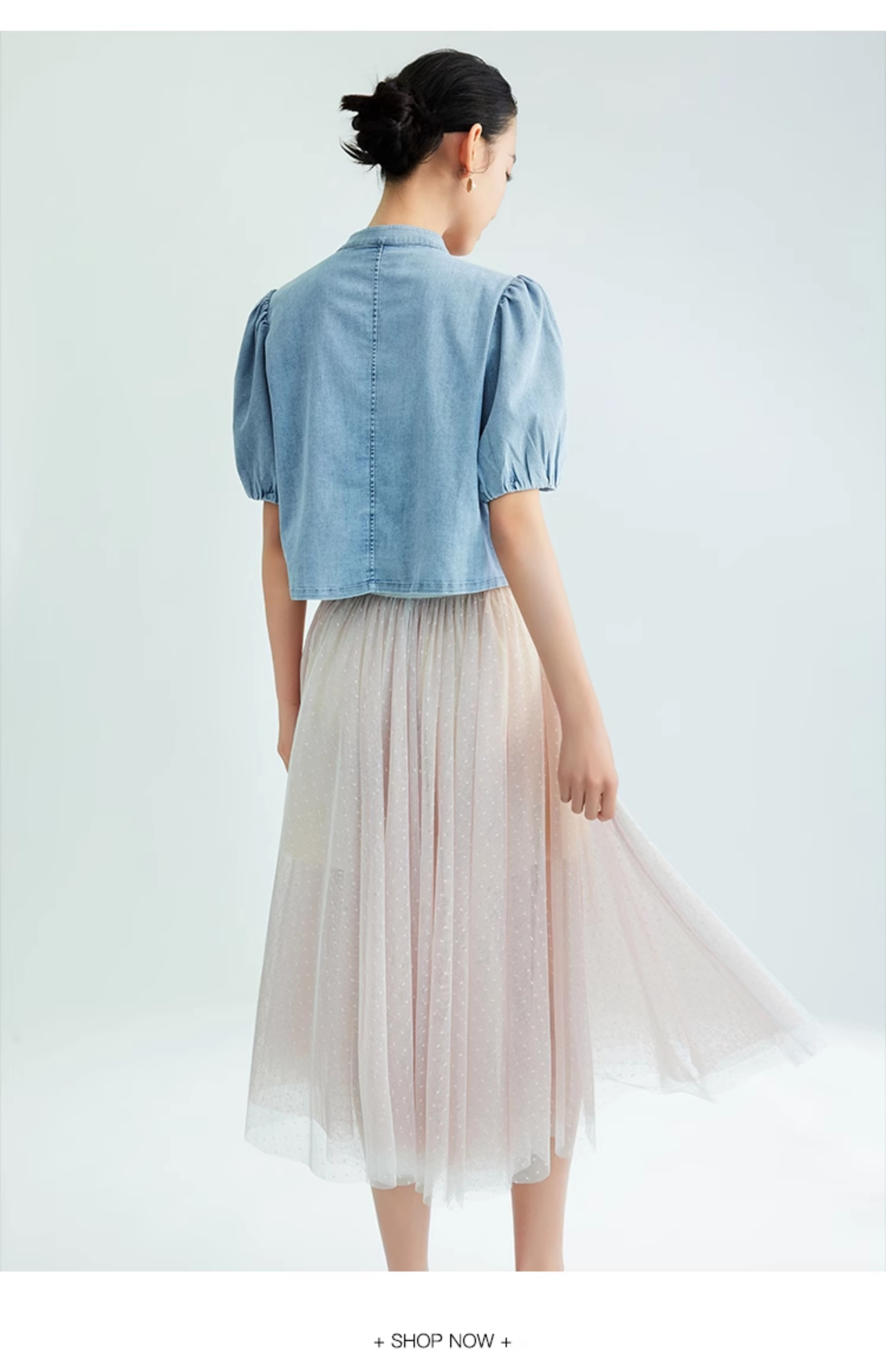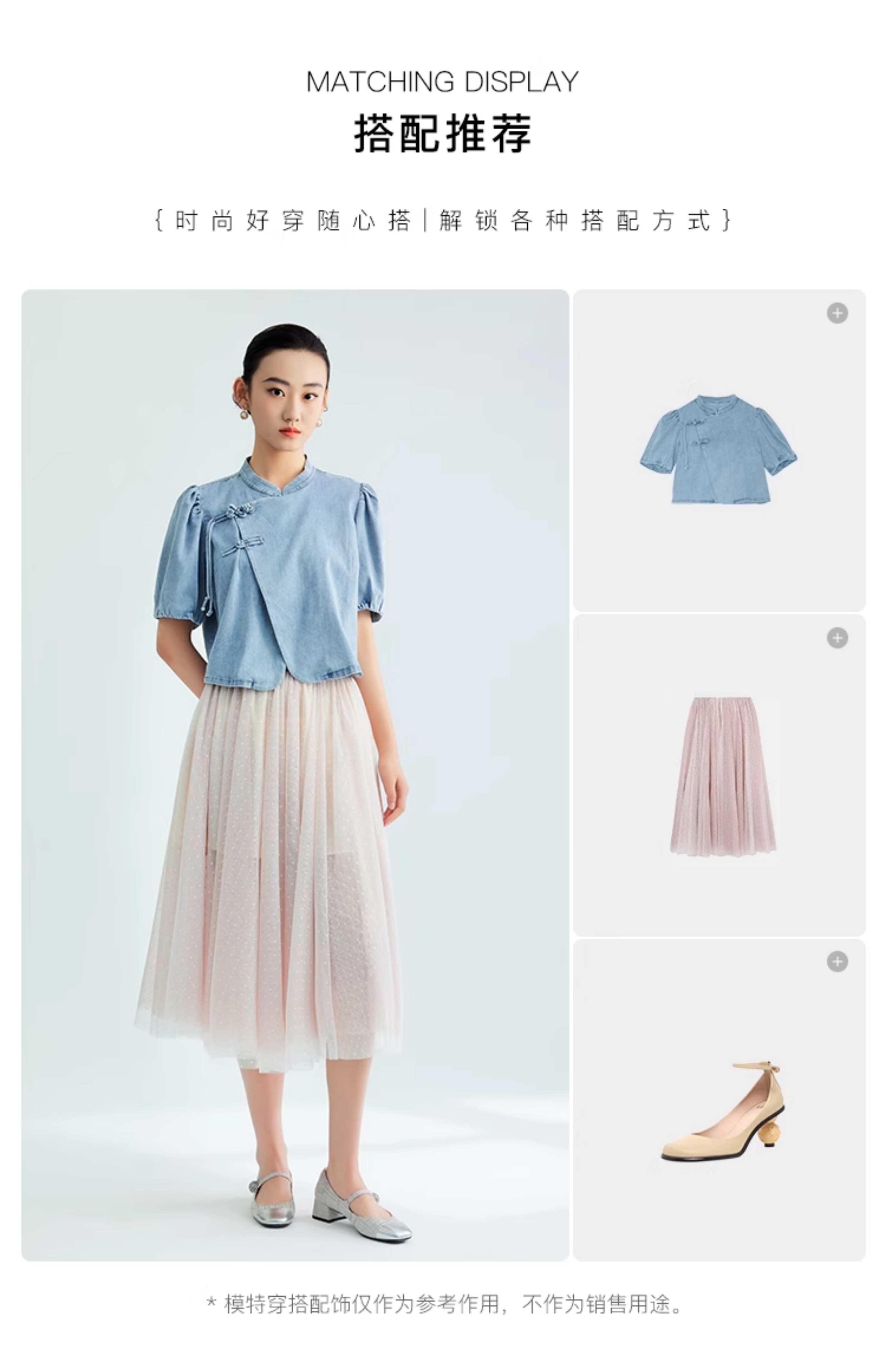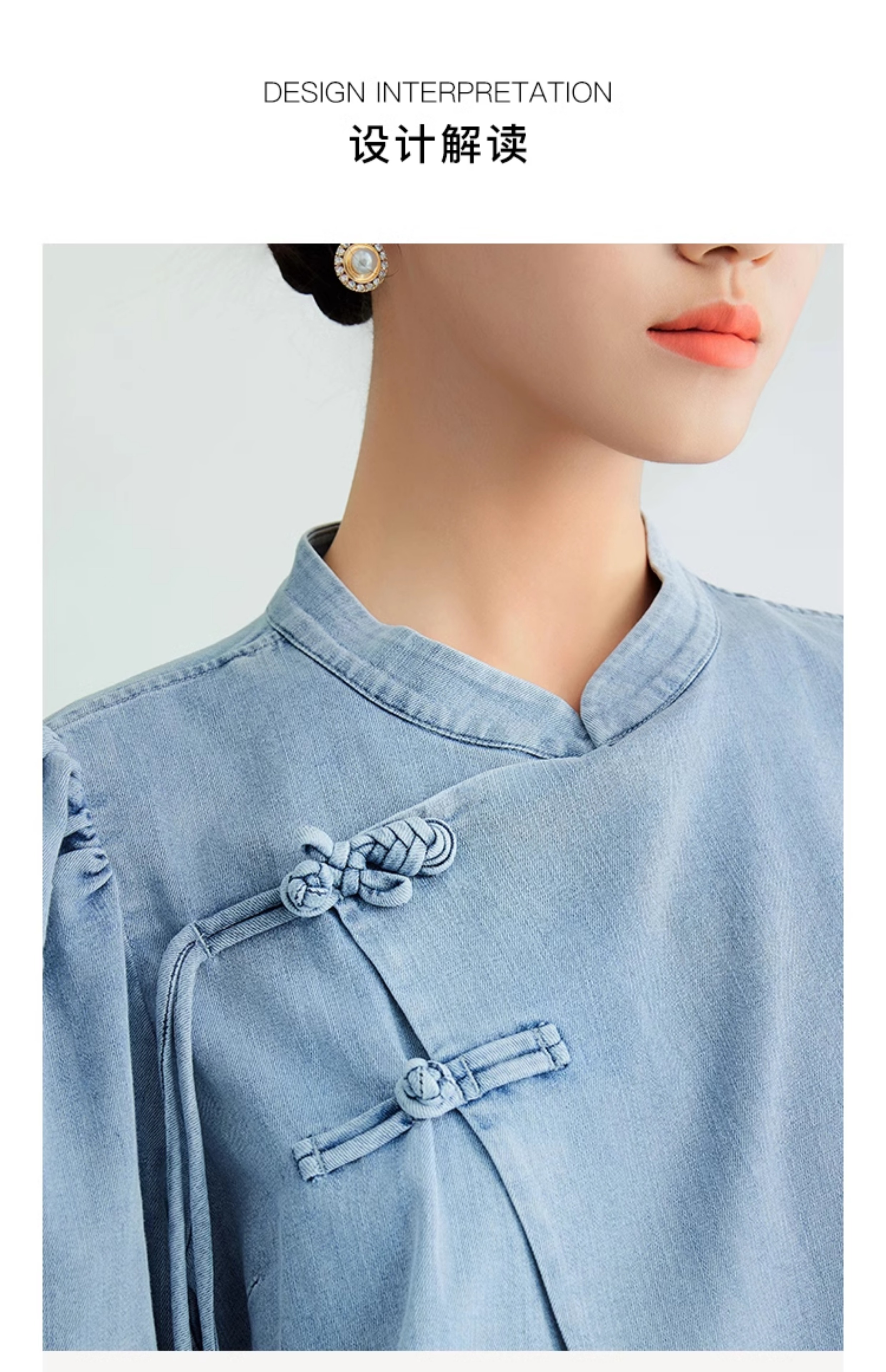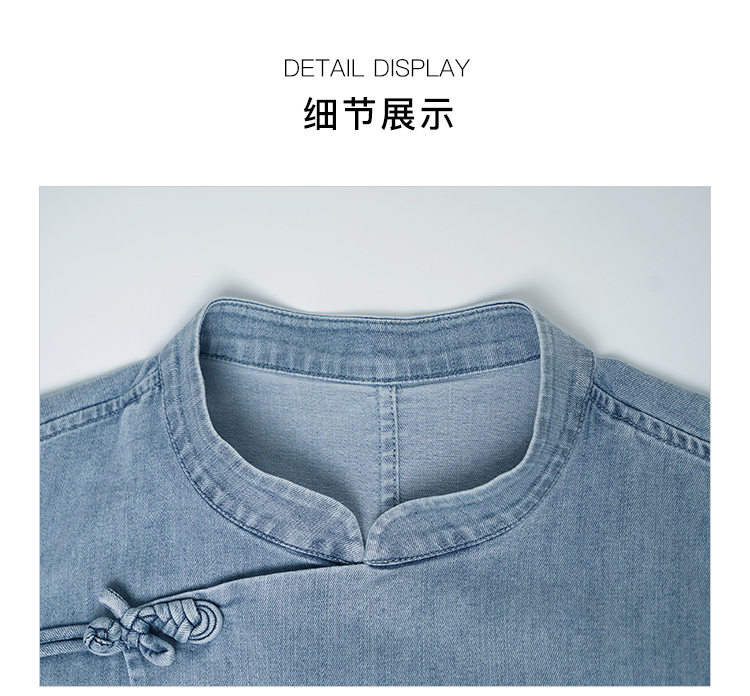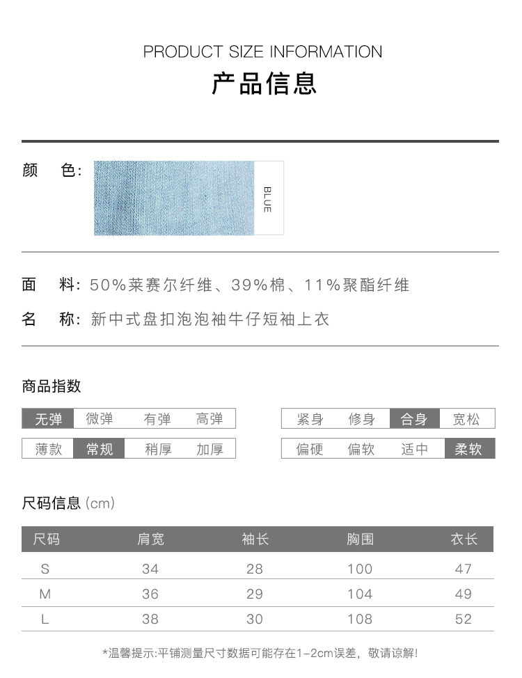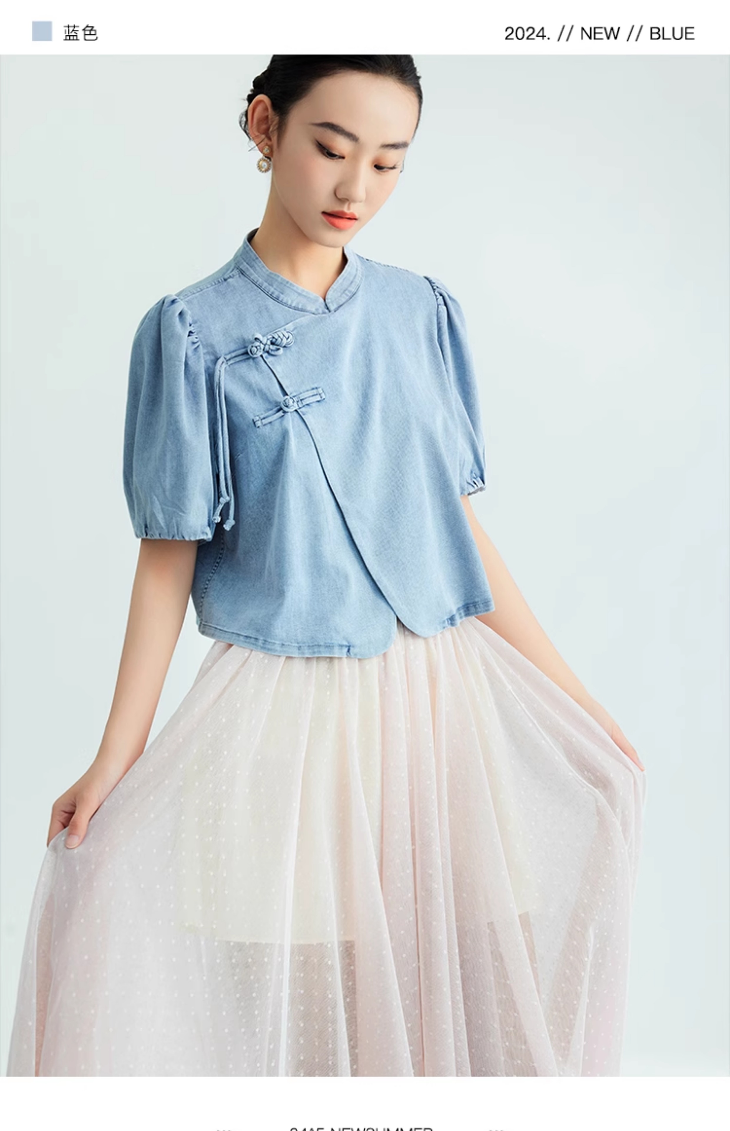 郭培成衣品牌新中式盘扣泡泡袖牛仔短袖上衣