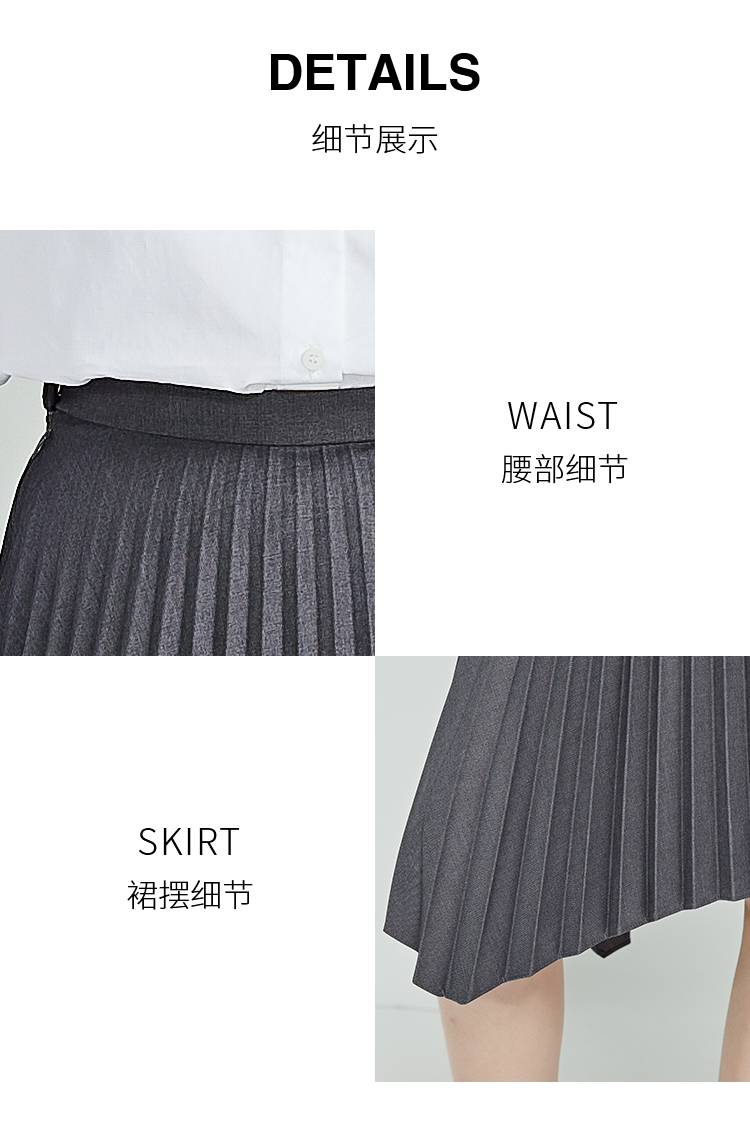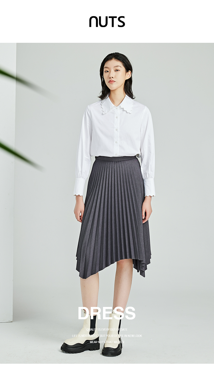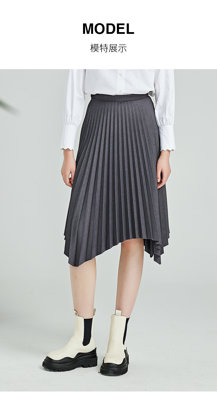 NUTS春秋季新款灰色高腰宽松显瘦不规则百褶半身裙女412061373