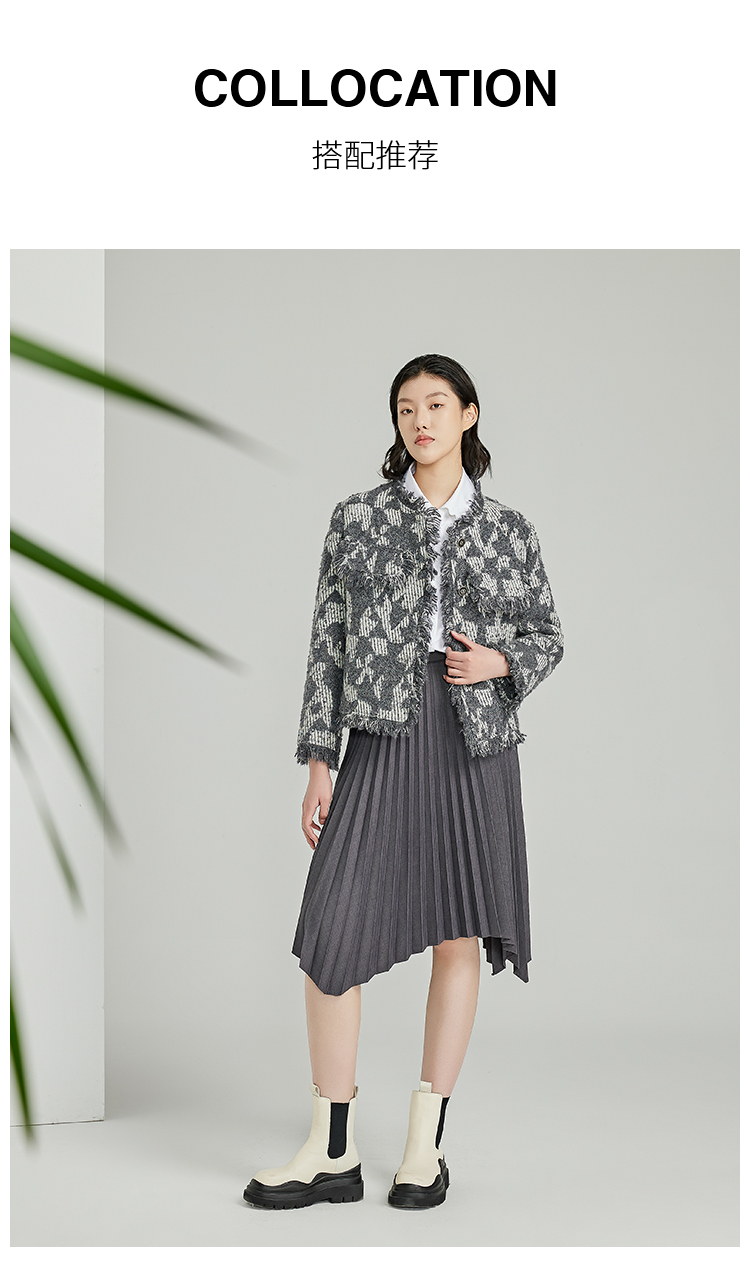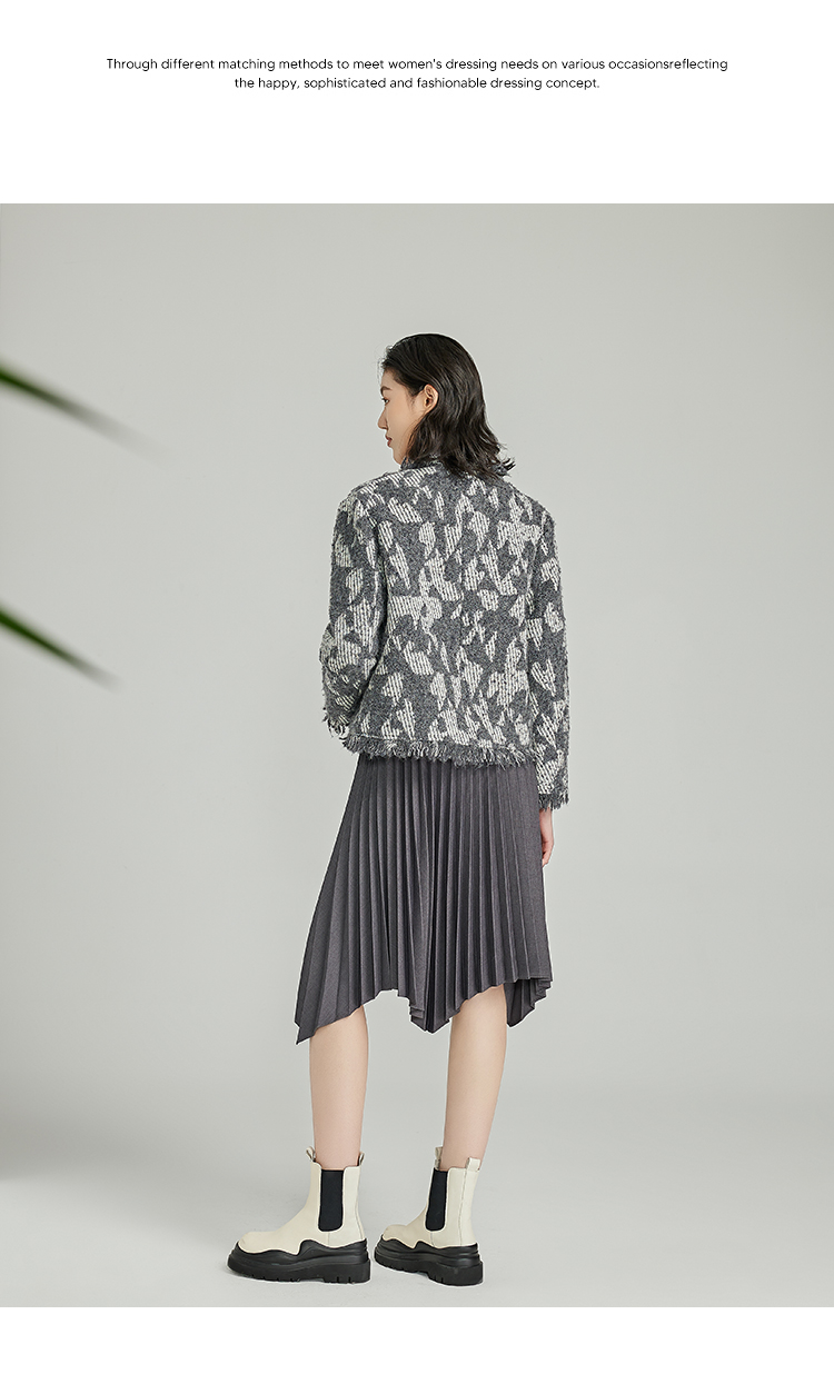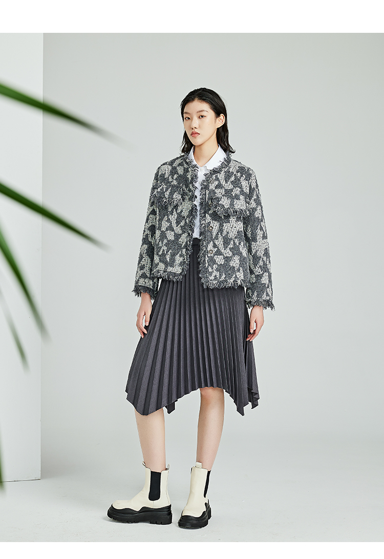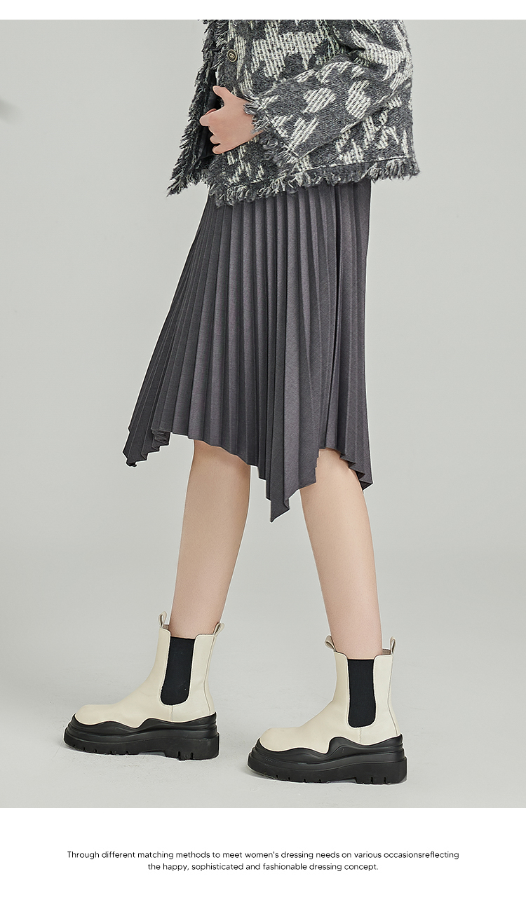 NUTS春秋季新款灰色高腰宽松显瘦不规则百褶半身裙女412061373