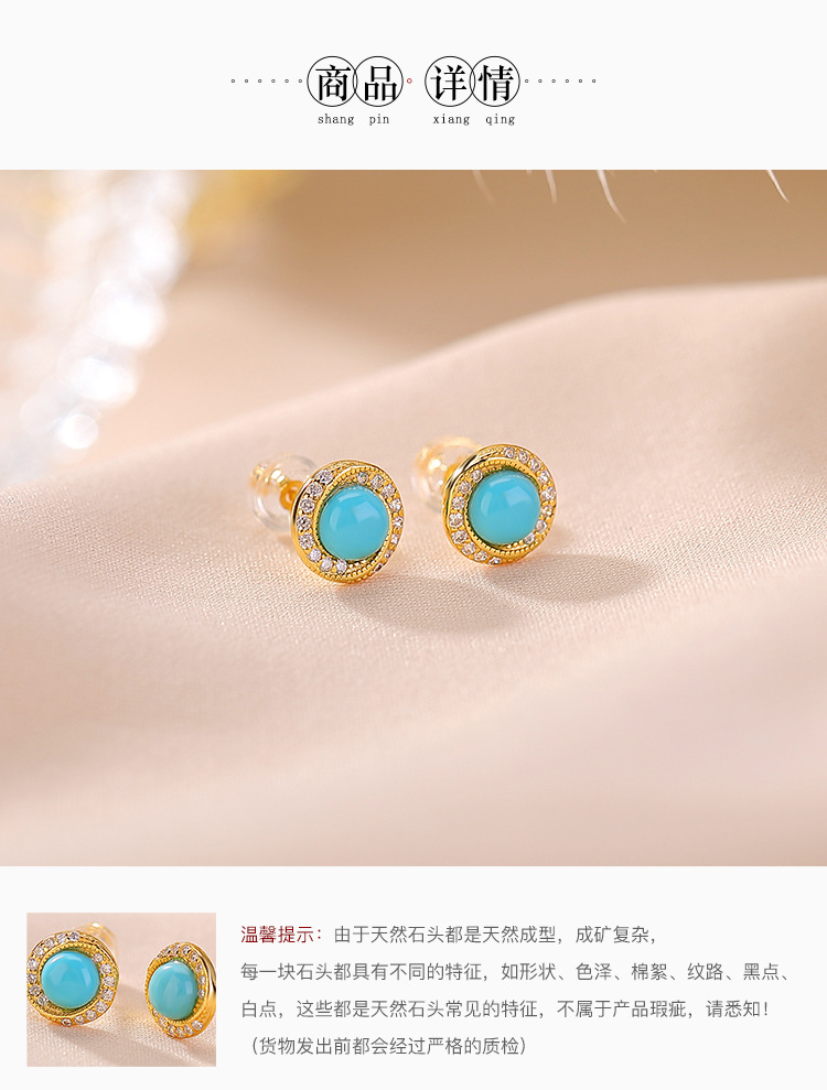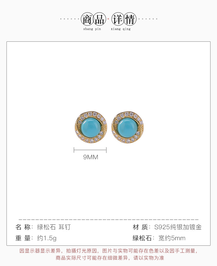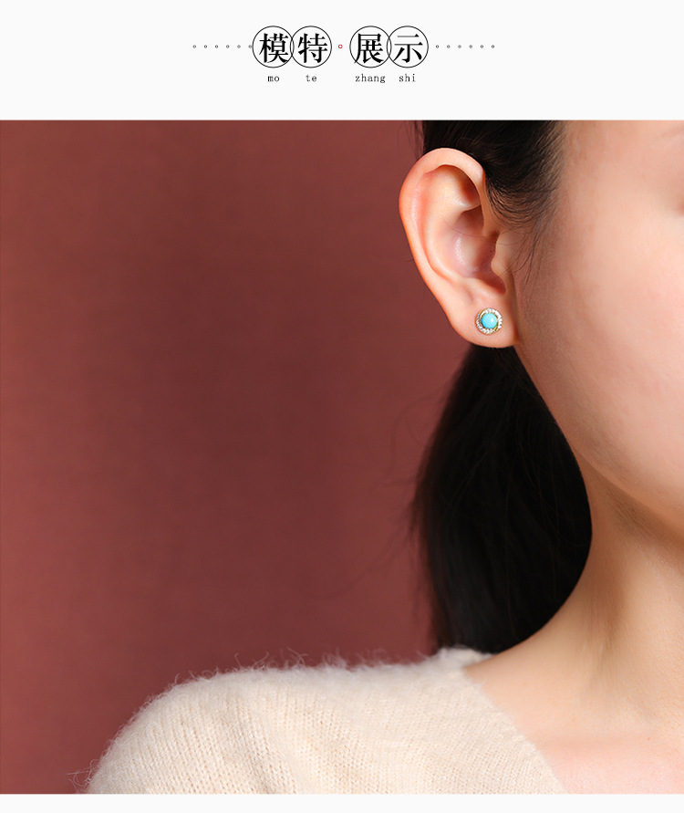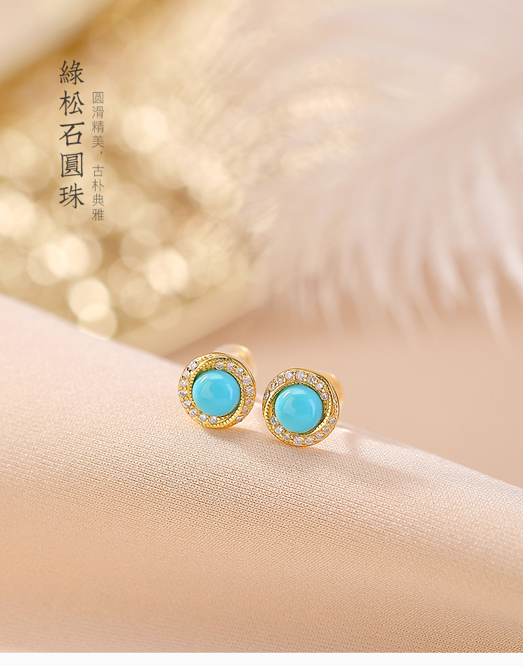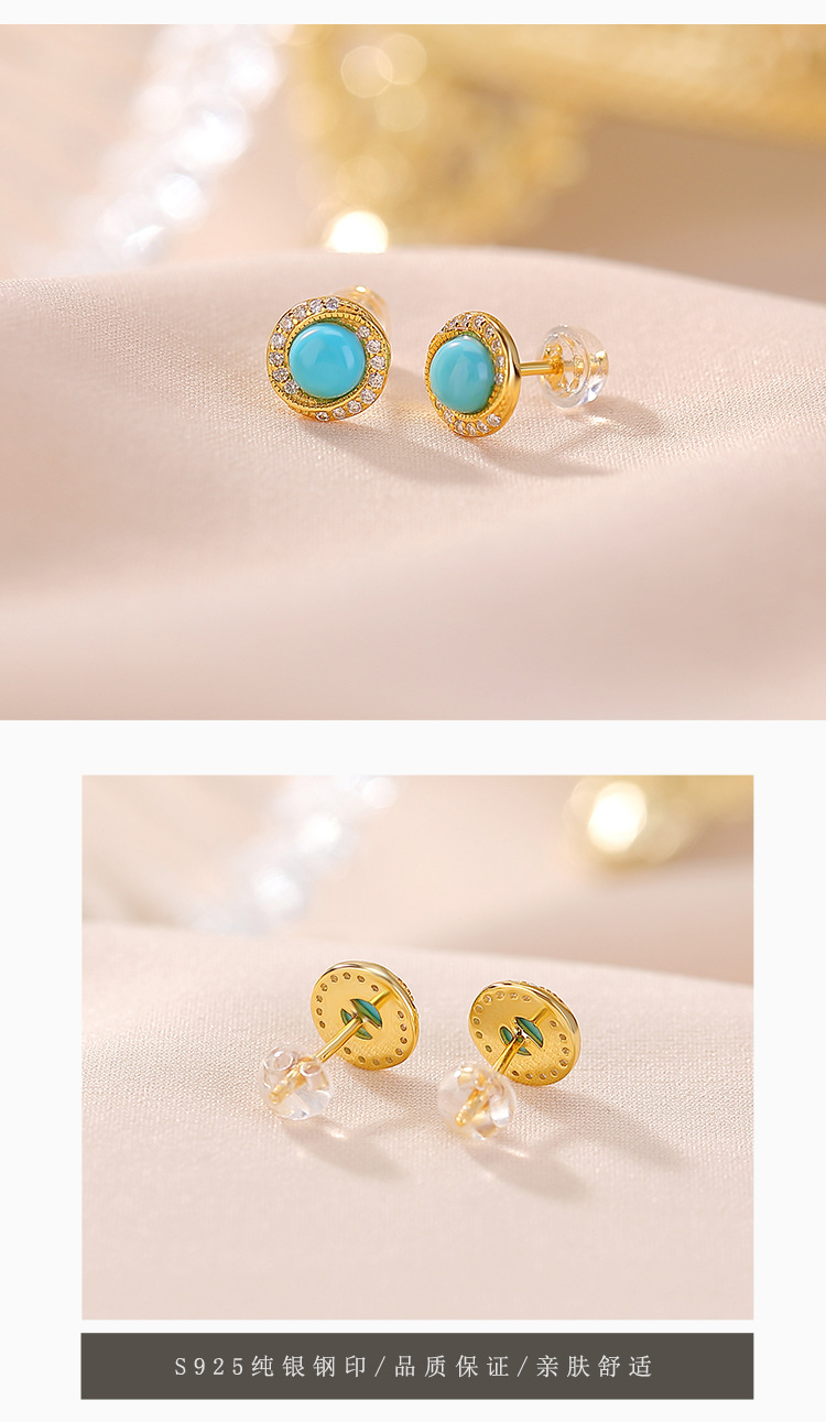 【瑞启】S925纯银镀金绿松石扭纹莫比乌斯环耳钉【CW-ED04455】