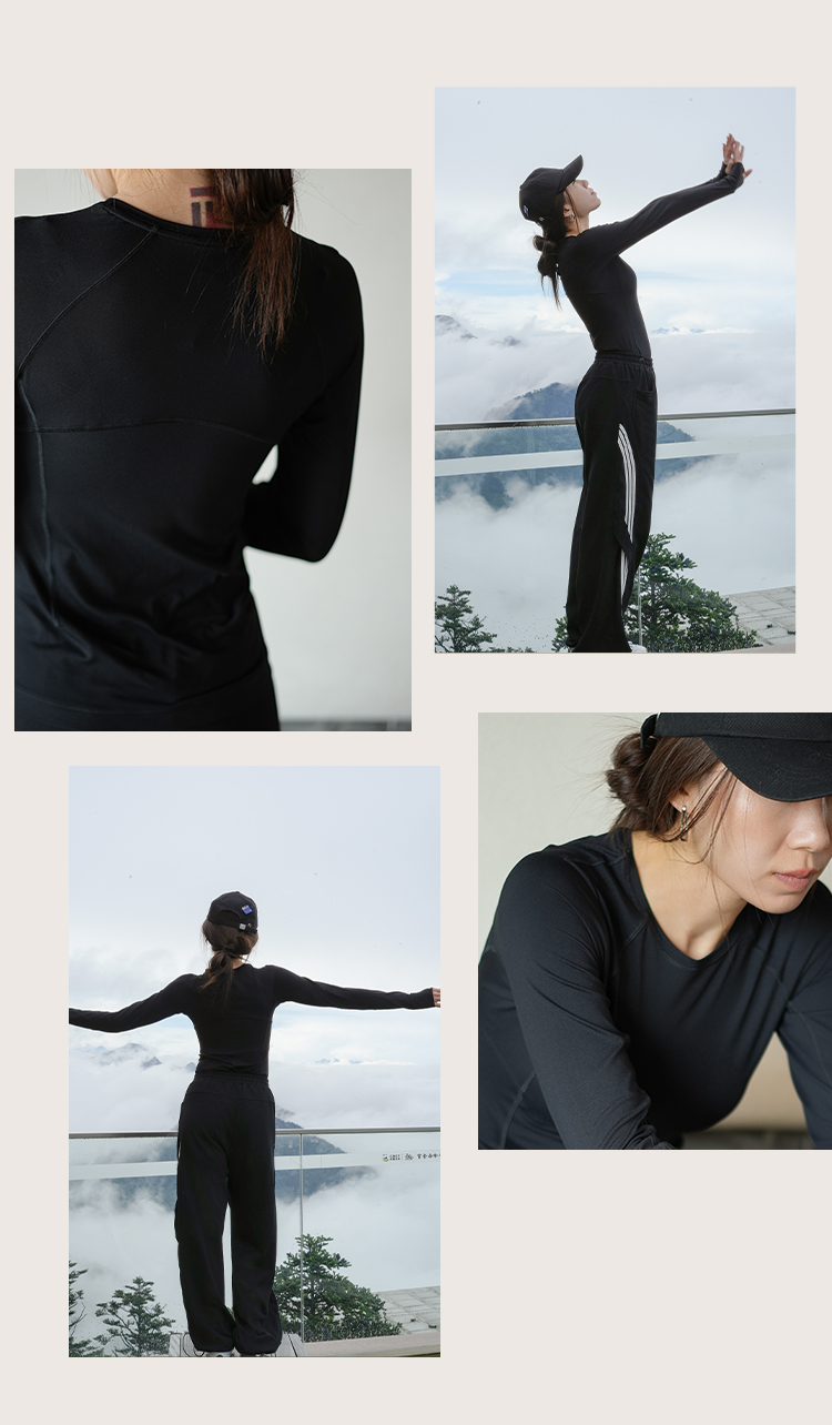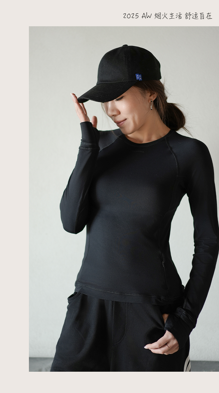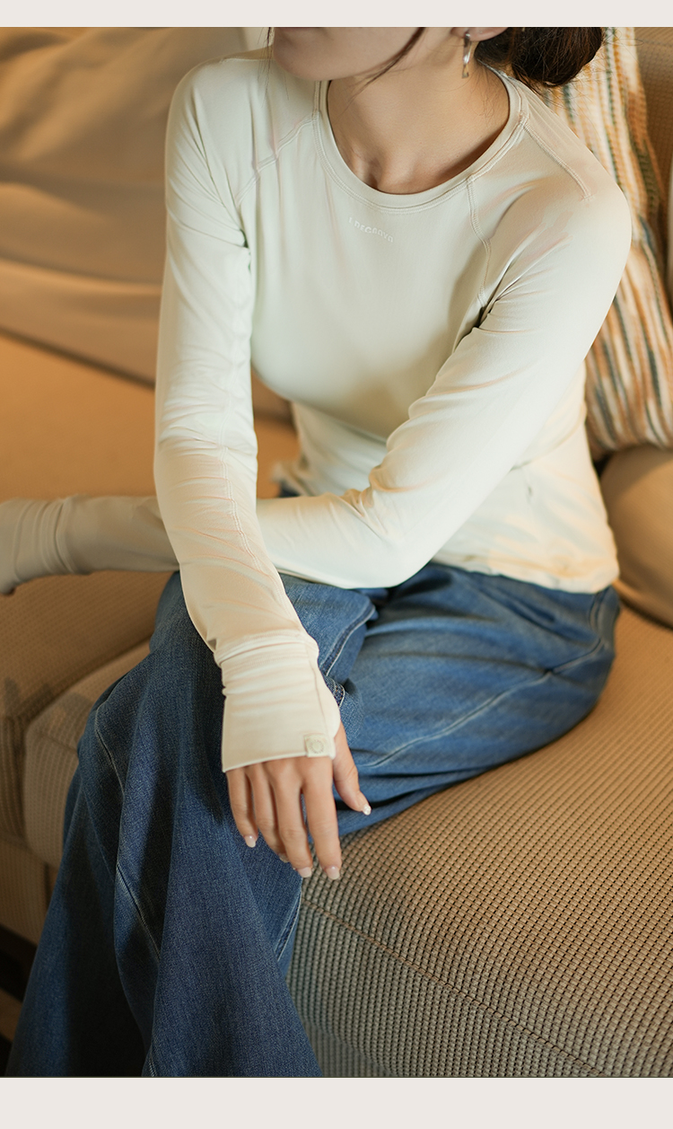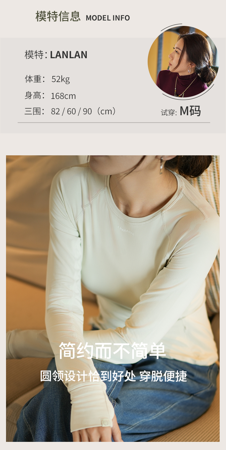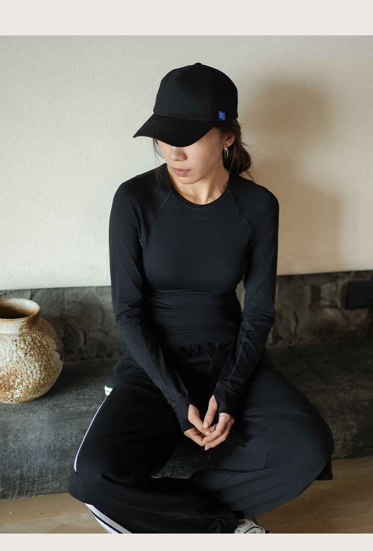 L RECNAVA 圆领高弹运动休闲长袖上衣 插肩袖打底衫