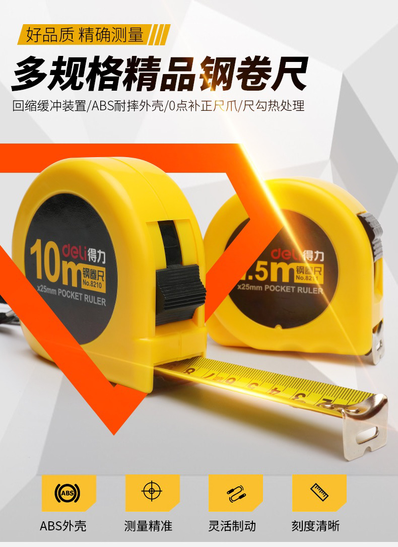得力钢卷尺2m3m5m10m装修量房尺子米尺测量身高不锈钢