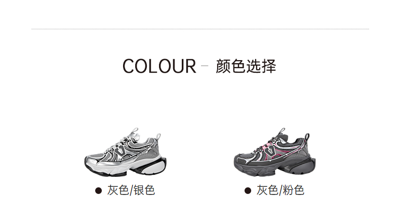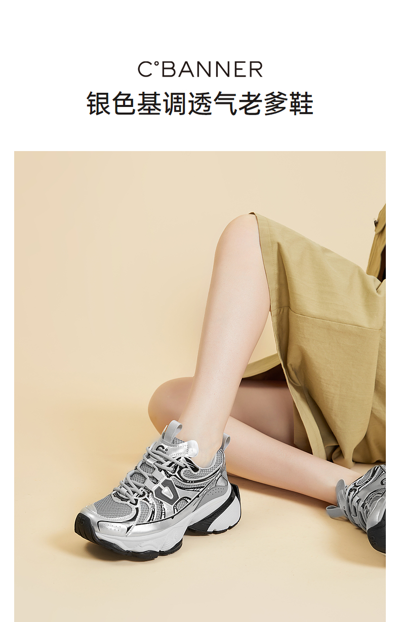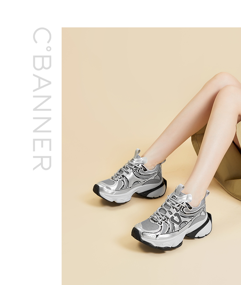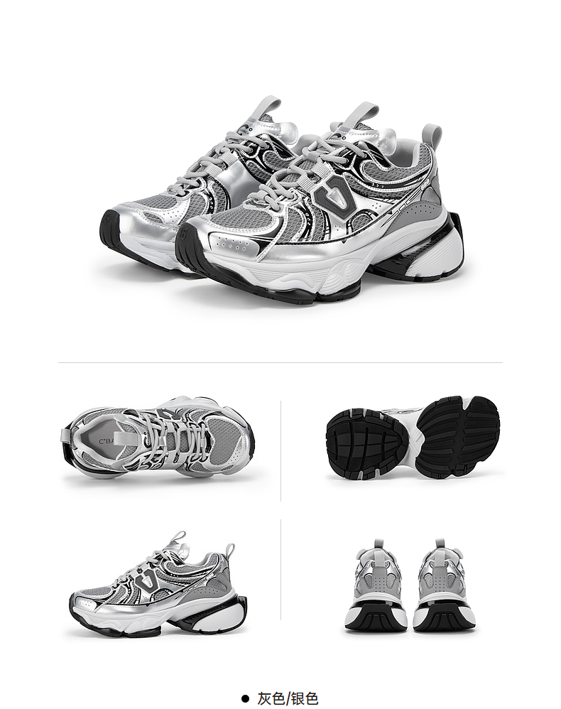 千百度银色厚底老爹鞋女春季网面鞋时尚运动休闲鞋增高A24118809
