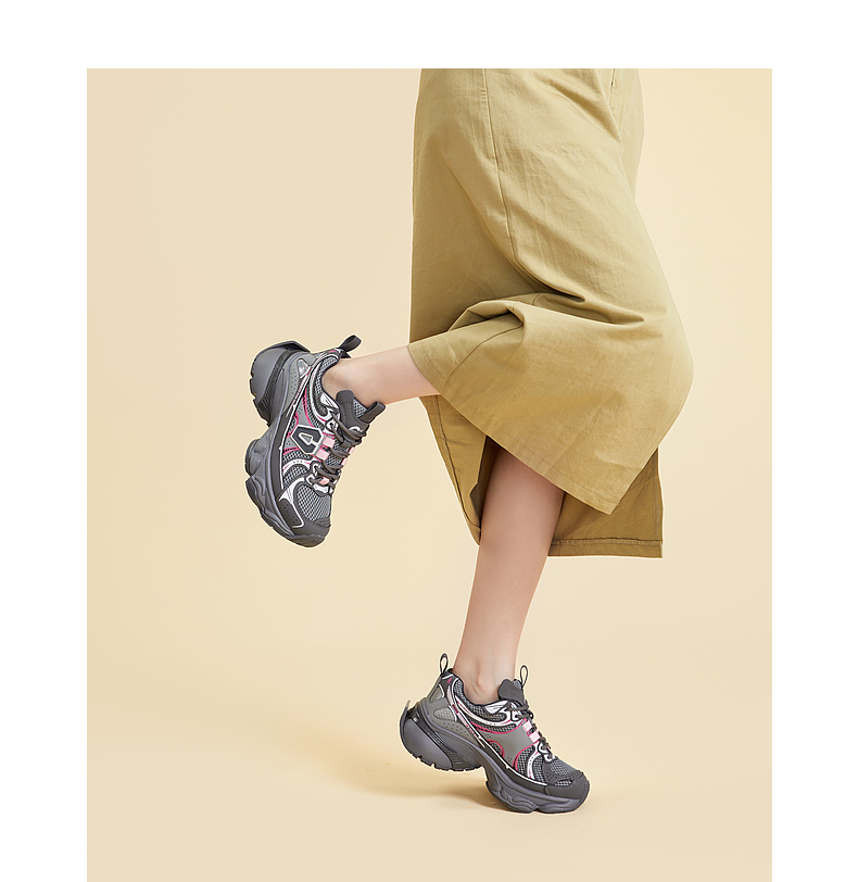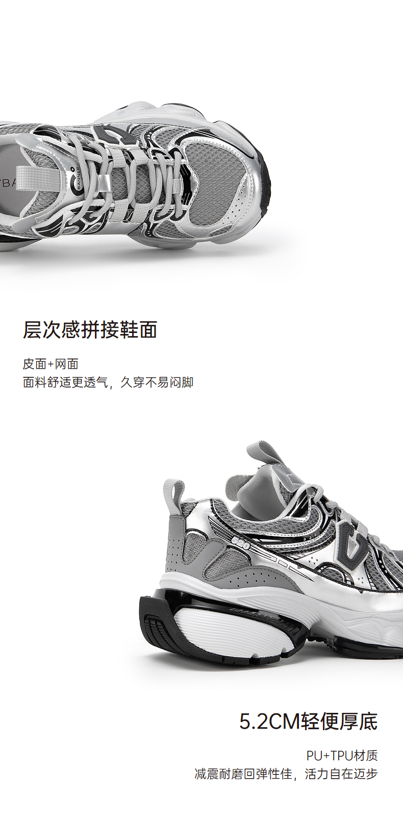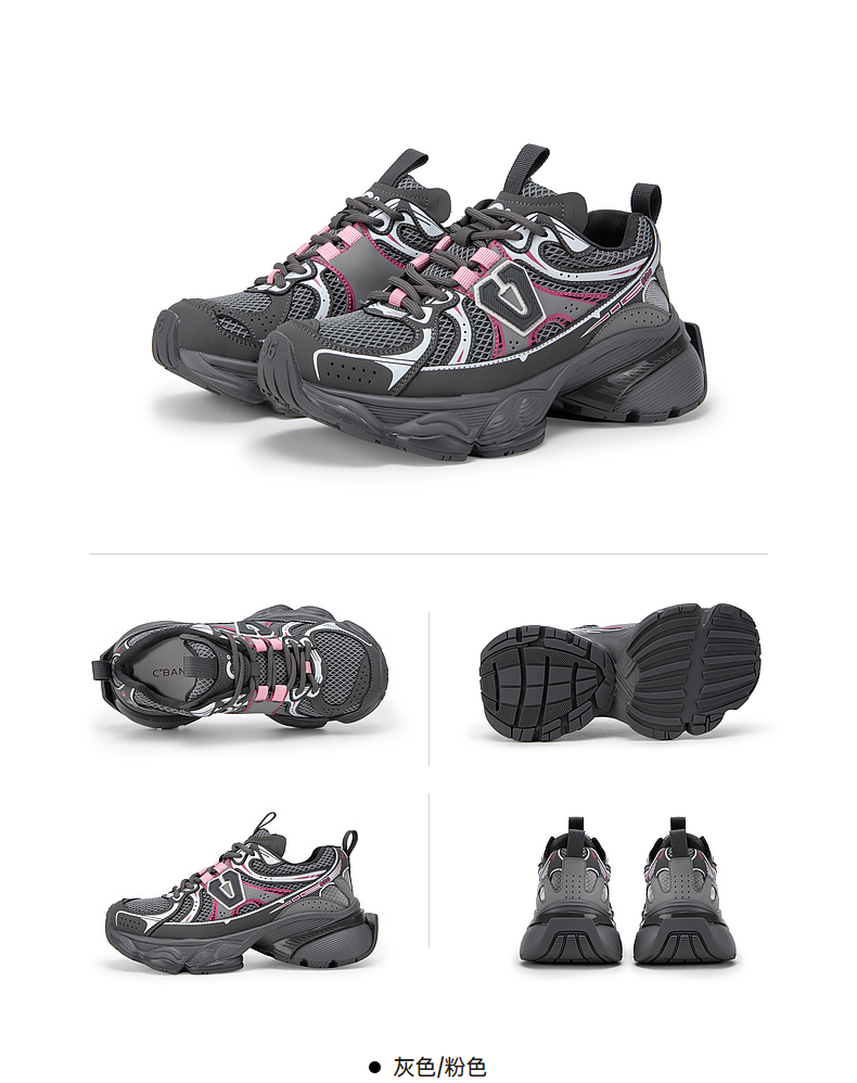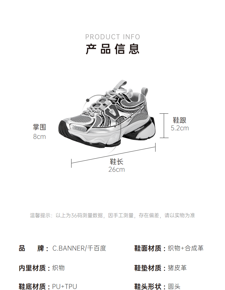 千百度银色厚底老爹鞋女春季网面鞋时尚运动休闲鞋增高A24118809