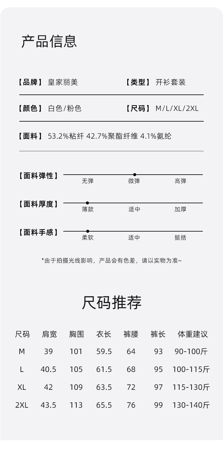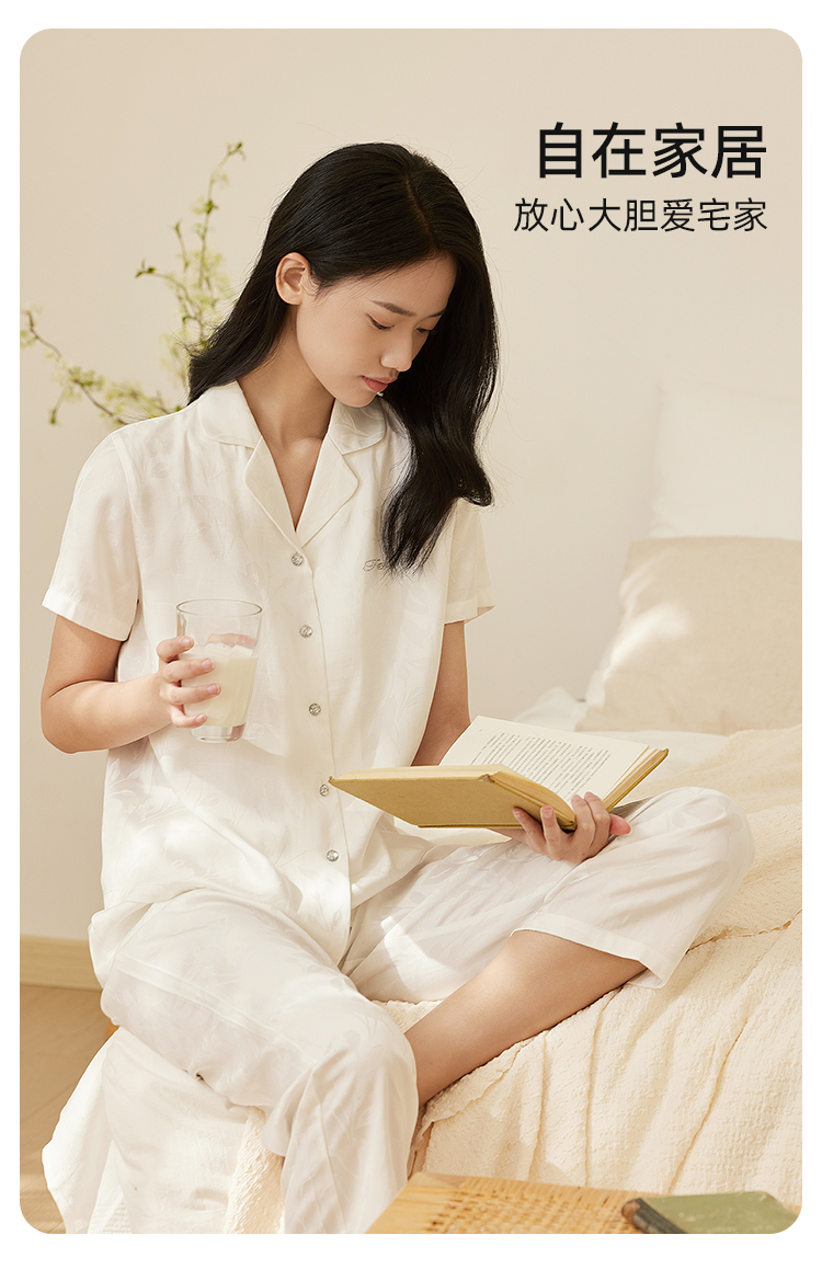 皇家丽美新款人棉高品质短袖长裤开衫家居服睡衣JJT9122