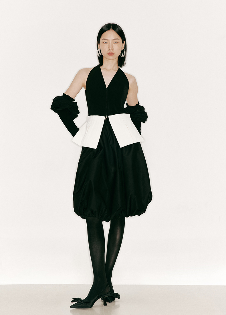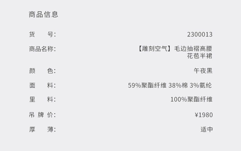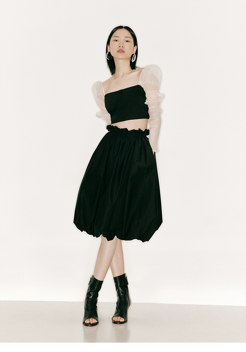 【雕刻空气】毛边抽褶高腰花苞半裙/2300013