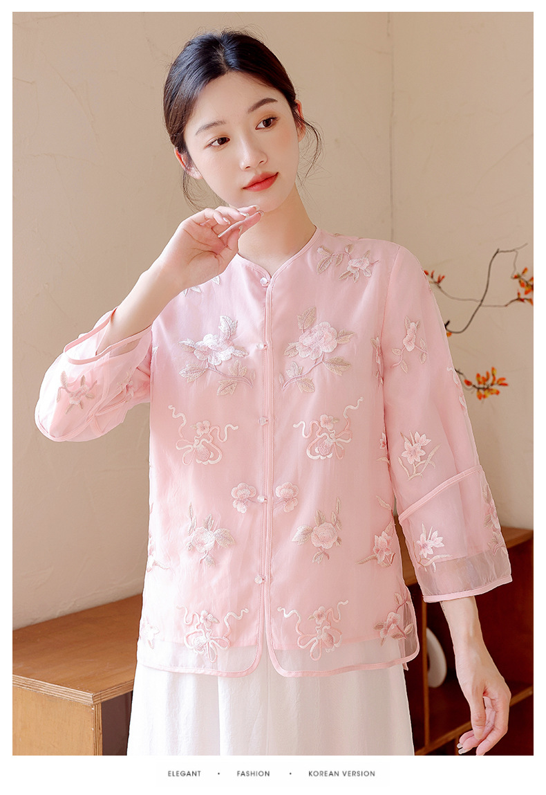 新中式复古,重工满绣柔顺欧根纱改良唐装上衣女装夏季开衫外套SJ-9485