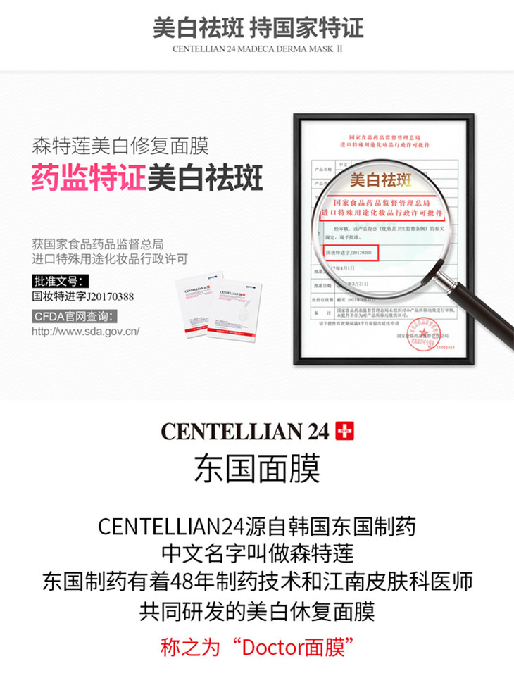 CENTELLIAN 24森特莲东国面膜 积雪草成份面膜 镁白舒缓 10/片