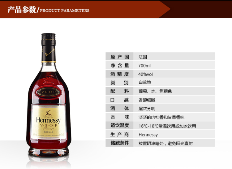 40度轩尼诗VSOP 700ml 单瓶