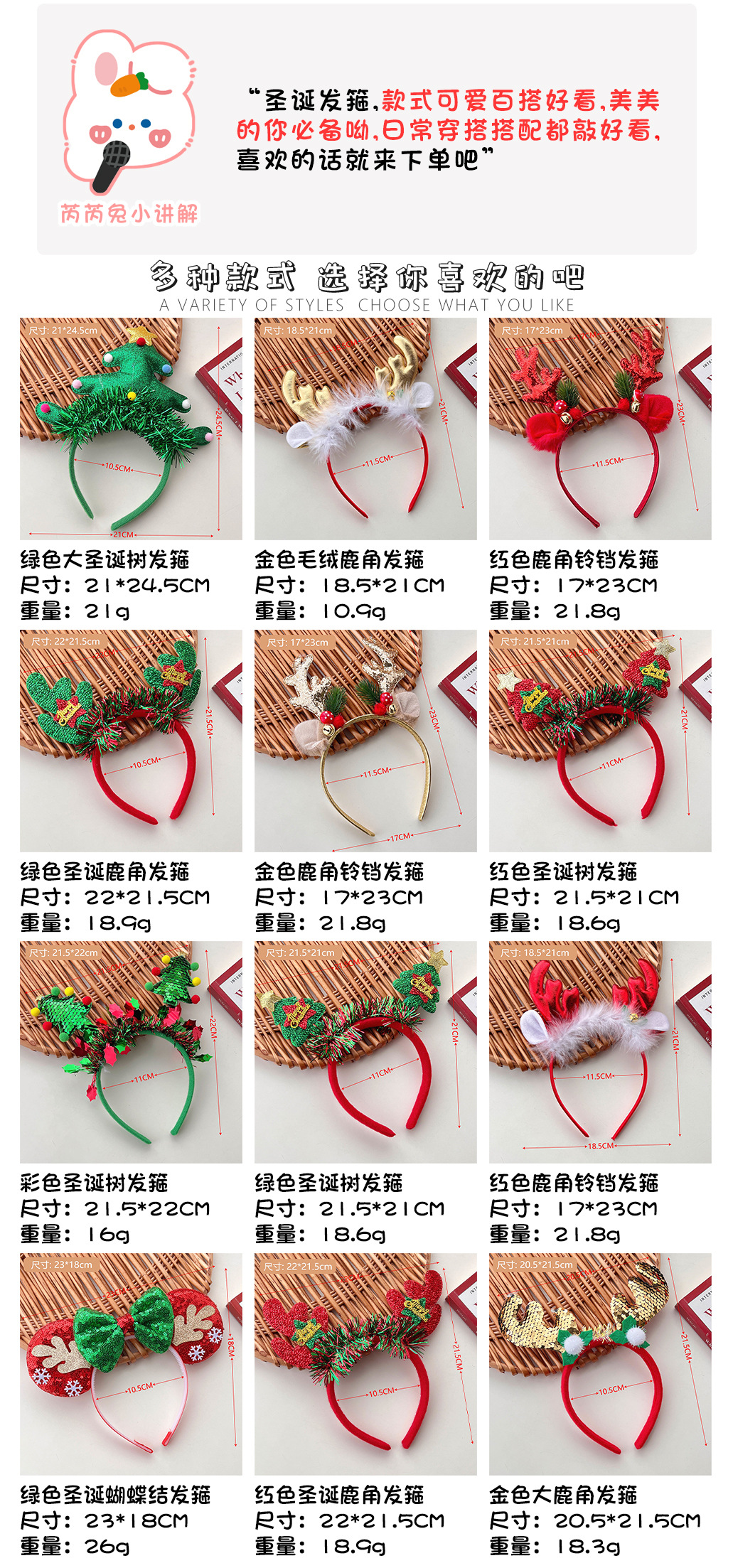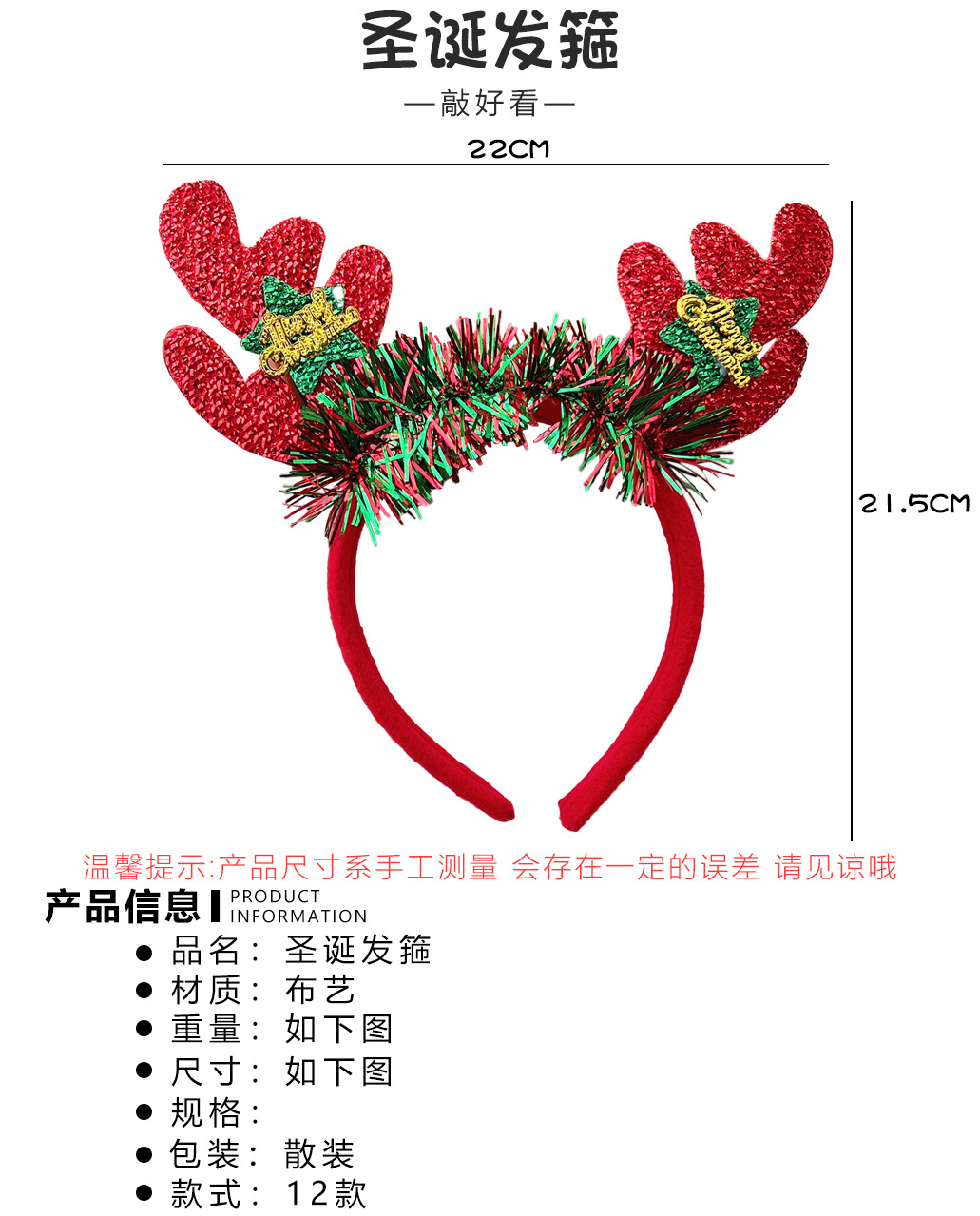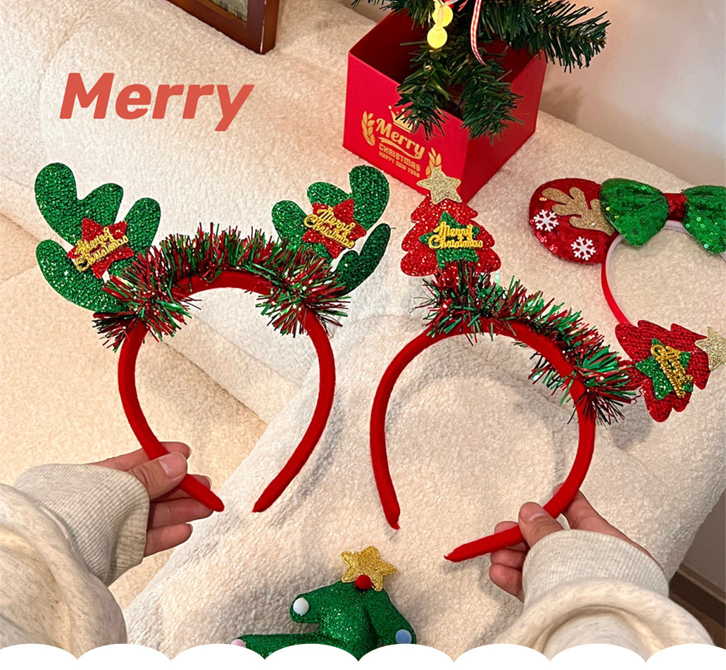 【圣诞礼物】鹿角秋冬季圣诞节头饰发箍狂欢派对 可爱甜美风少女圣诞树头箍装扮发饰