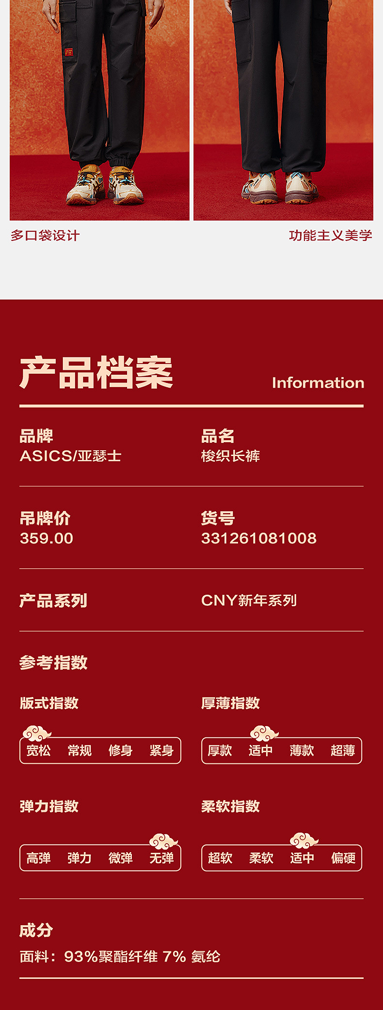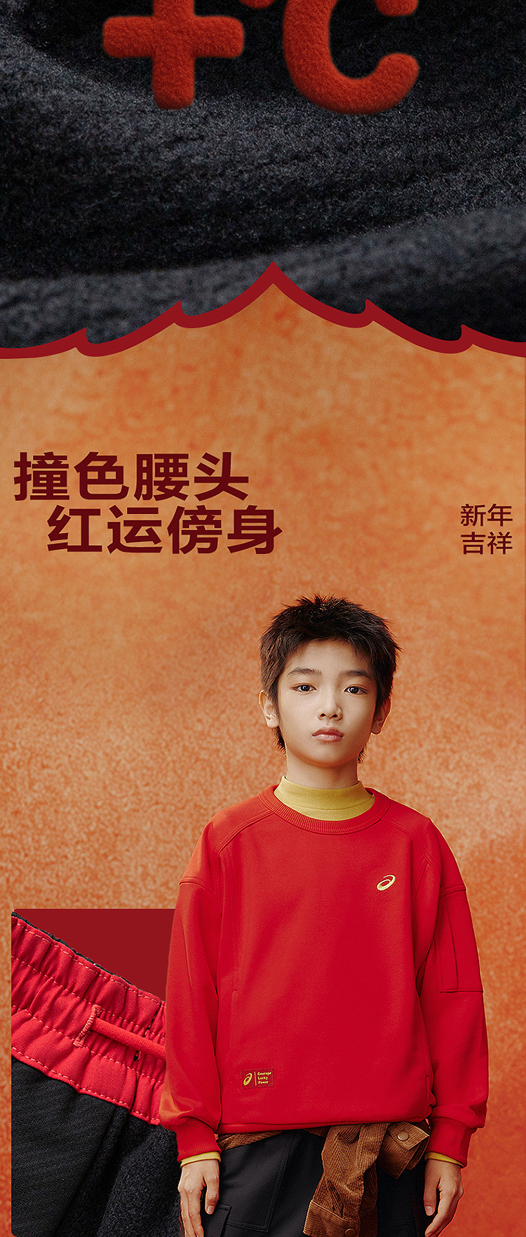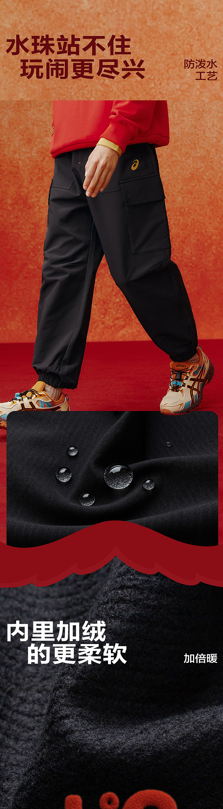 【商场同款】ASICS/亚瑟士儿童2026新年款加绒工装梭织长裤防泼水