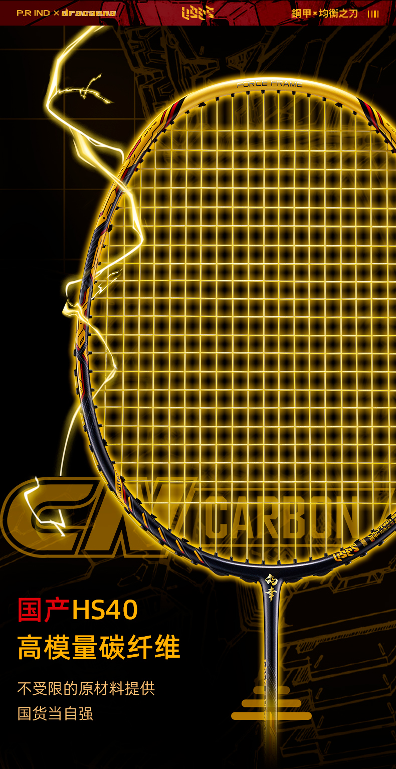 的幸浦锐联名款钢甲均衡之刃高模量碳纤维羽毛球拍单拍