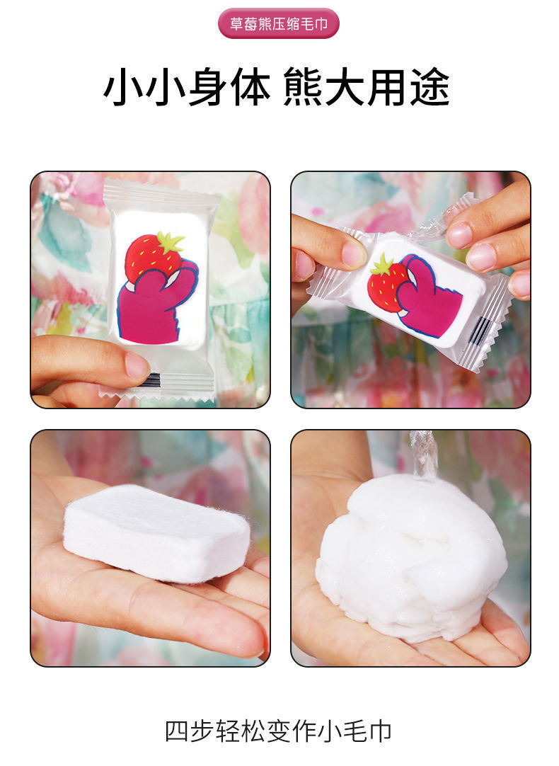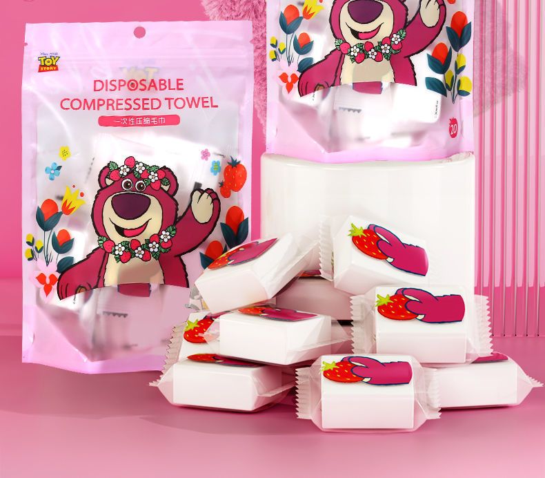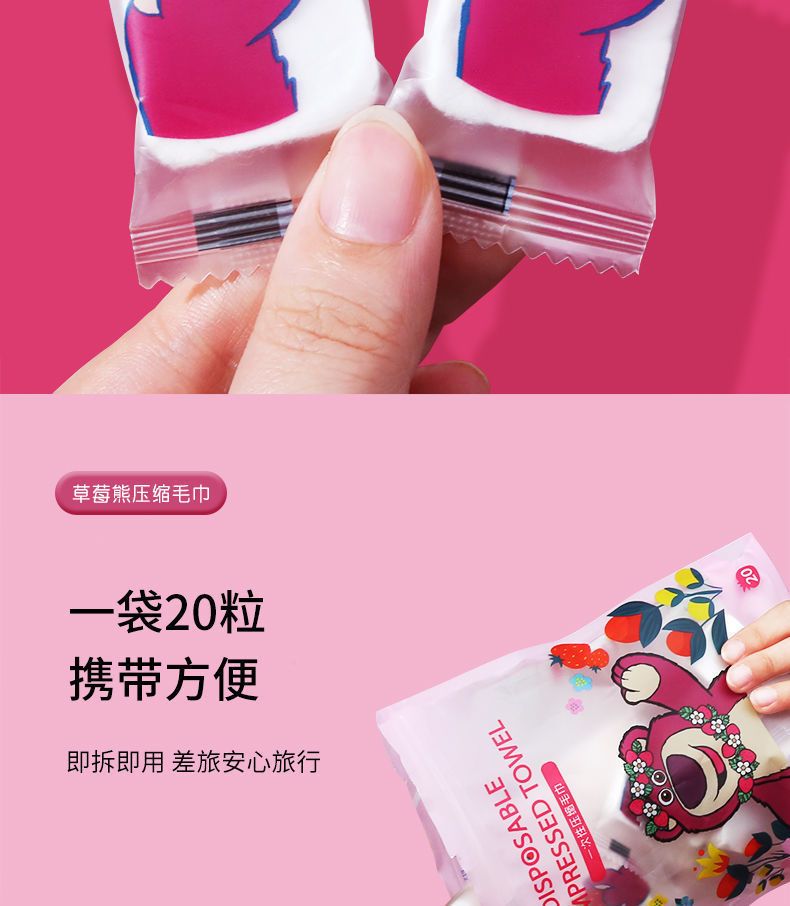 【爆款超低价预售 急单慎拍】迪士尼草莓熊加厚压缩毛巾旅行一次性洗脸巾纯棉洁神器擦脸巾