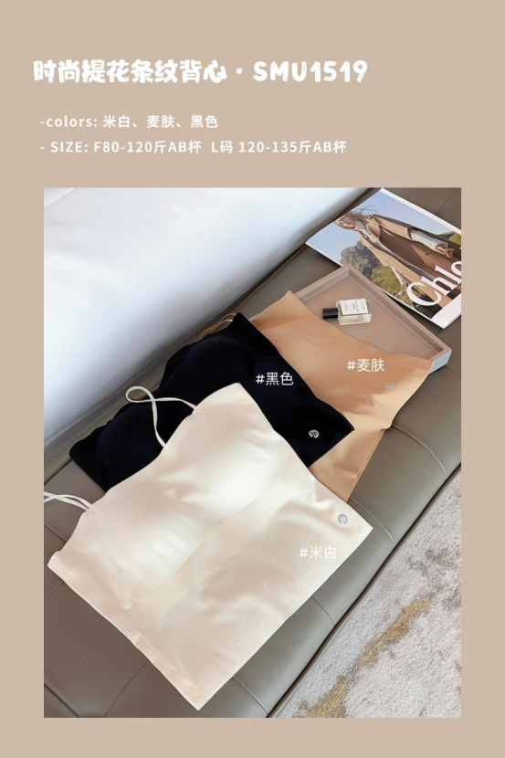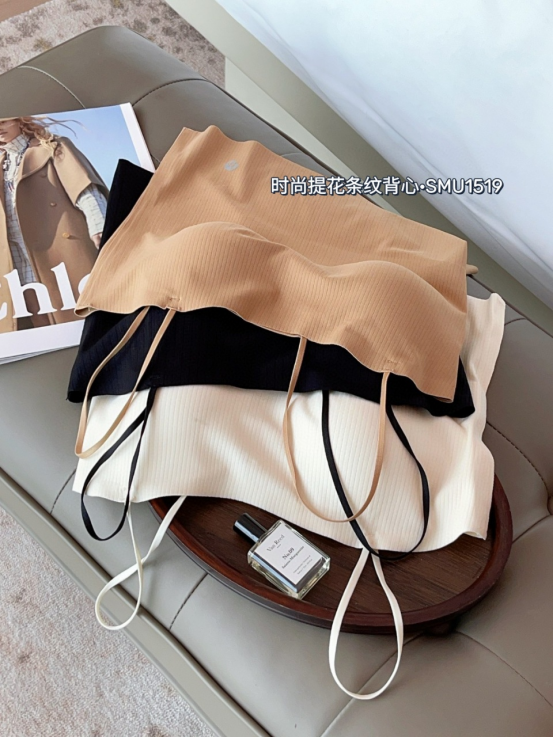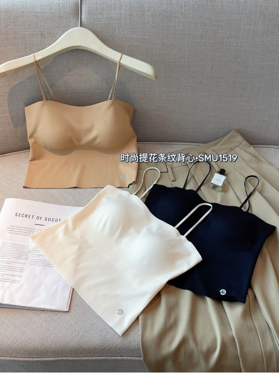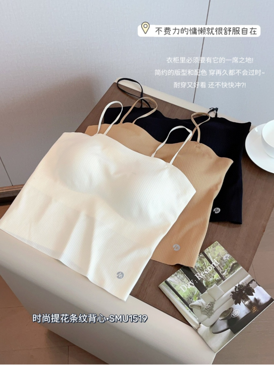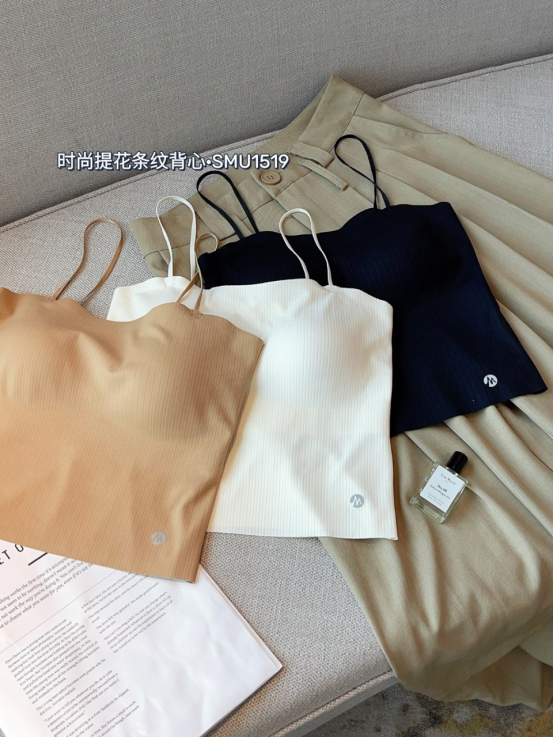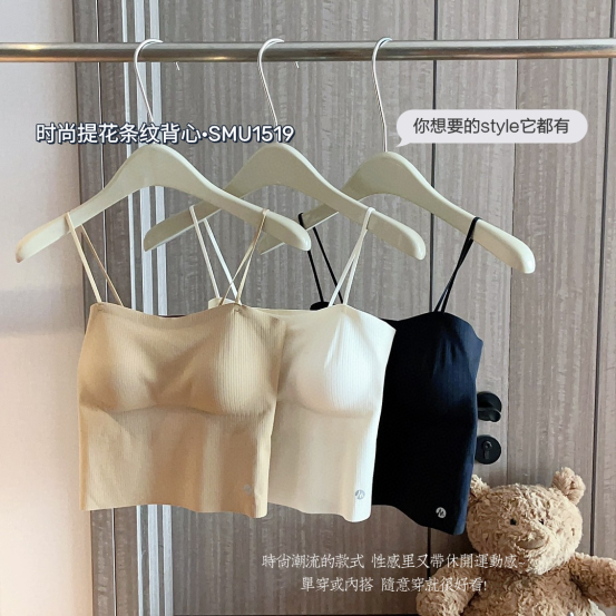 🔥【免穿文胸吊带】诗慕小姐 时尚提花条纹背心1519款2件 🌿提花条纹面料设计♥️ 自带胸垫 🌿半固定杯垫 可直接机洗的😍 不变形不跑杯