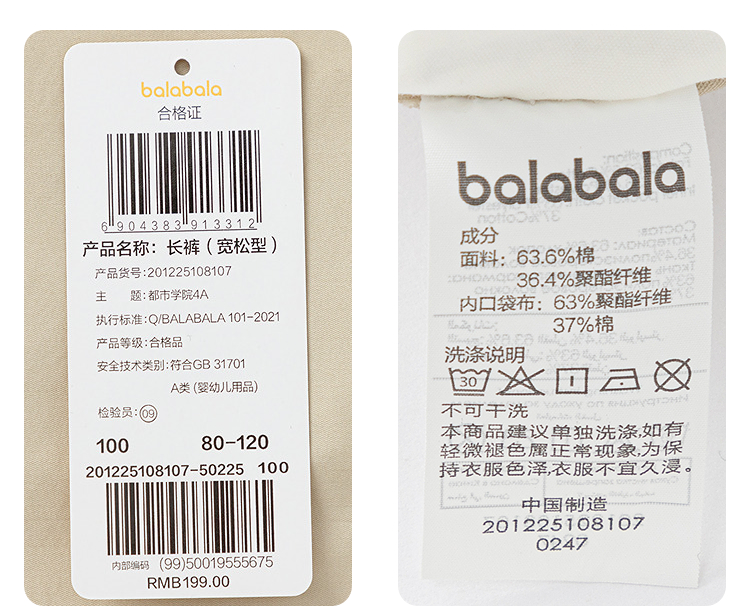 巴拉巴拉童装男童长裤宽松束脚防蚊裤2025夏新款速干
