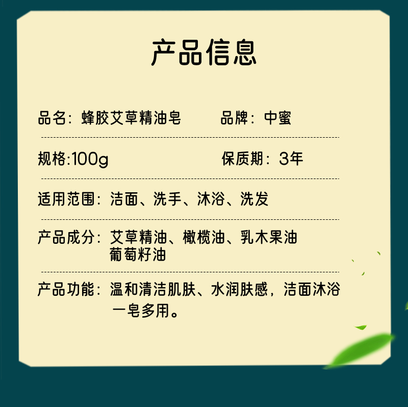 中蜜蜂胶艾草精油皂100g 2盒 温和清洁肌肤