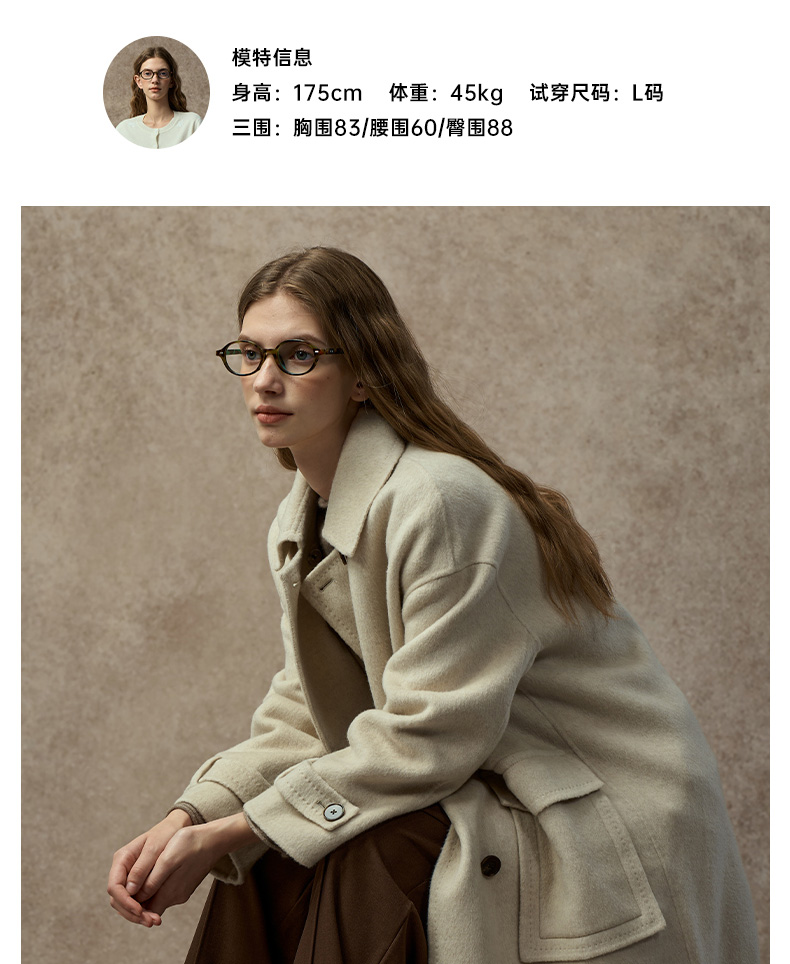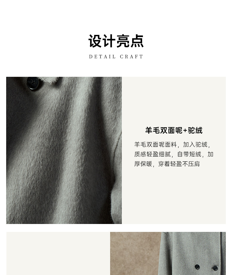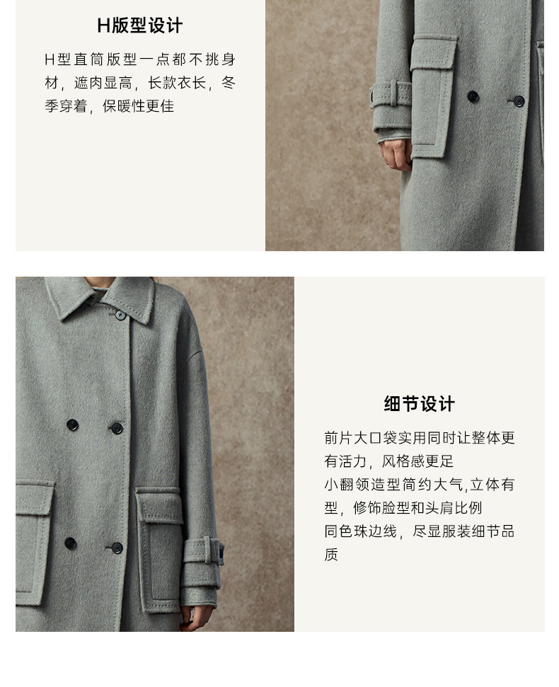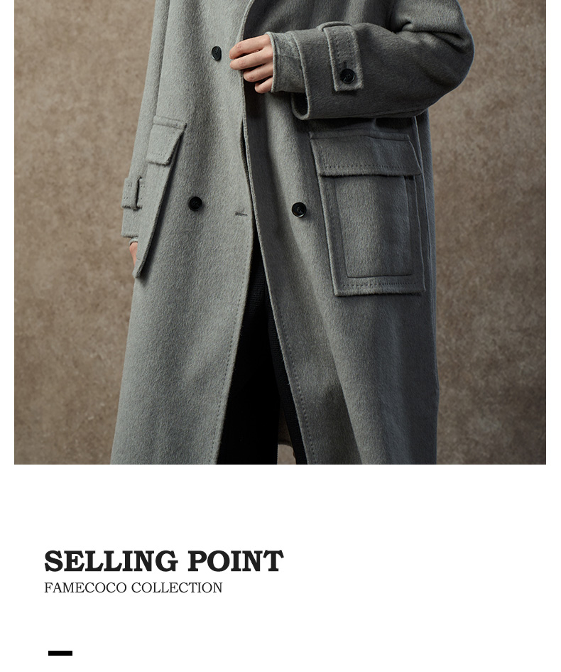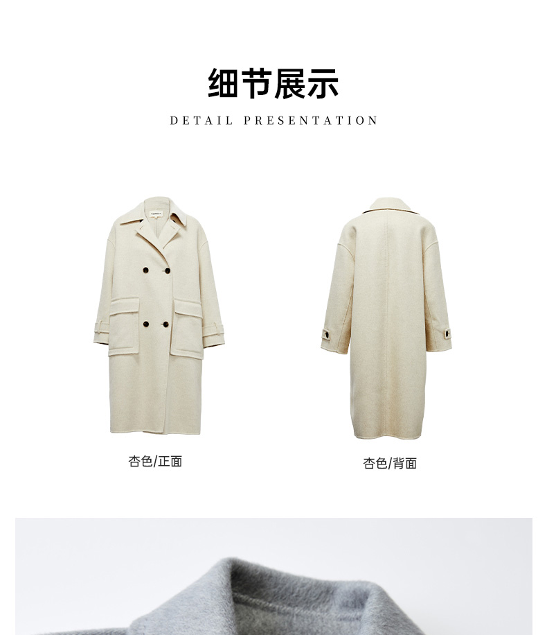 Famecoco范可儿翻领宽松显瘦经典款羊毛驼绒双面呢大衣FAC8AQ008