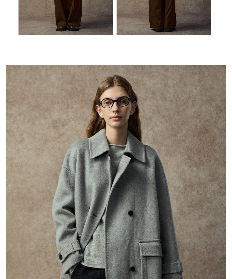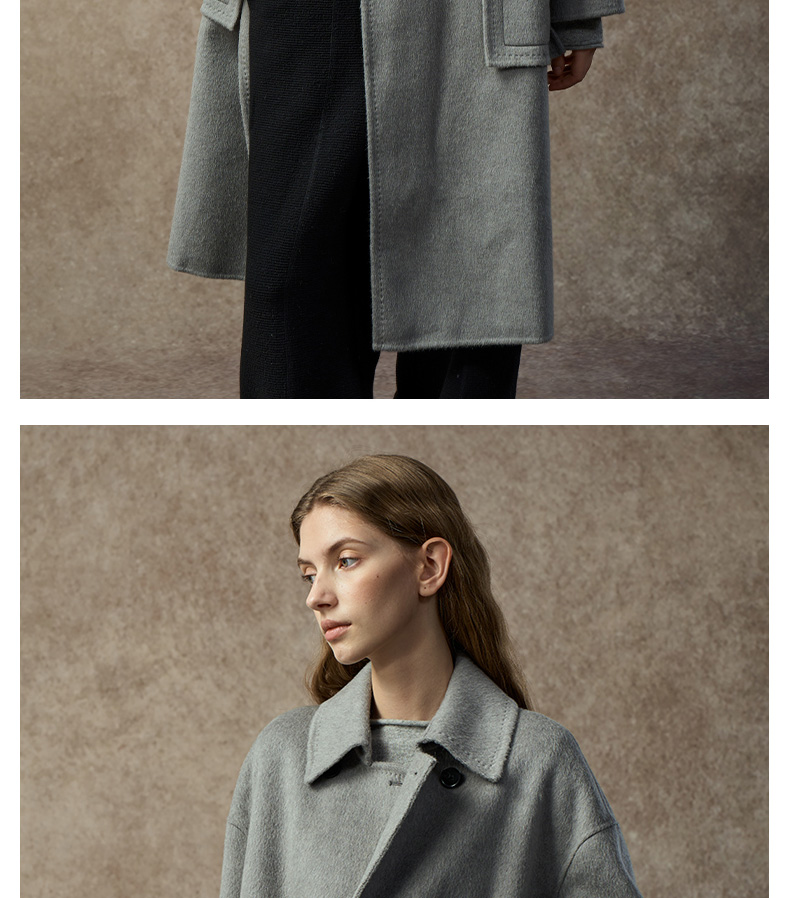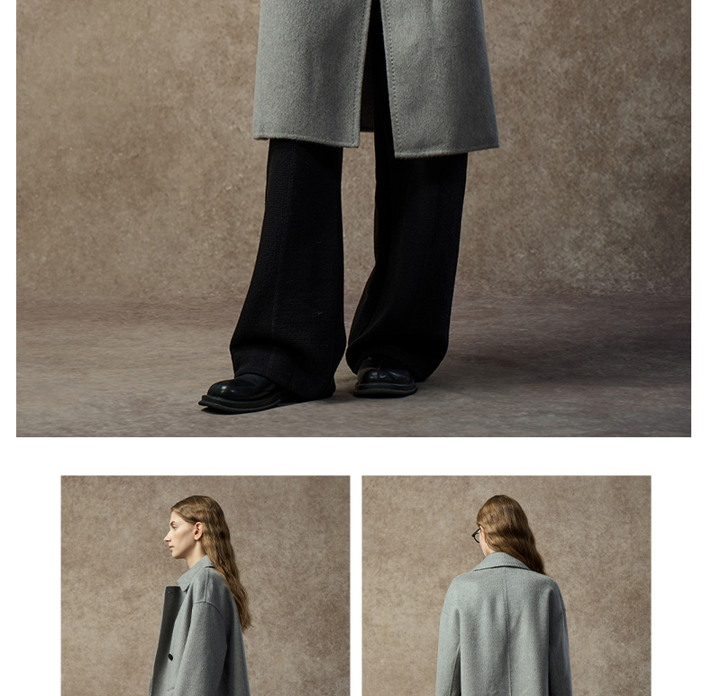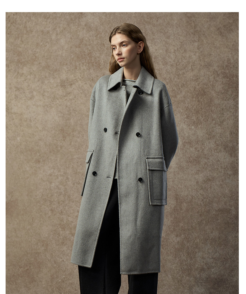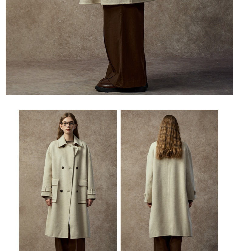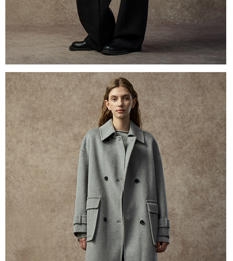 Famecoco范可儿翻领宽松显瘦经典款羊毛驼绒双面呢大衣FAC8AQ008