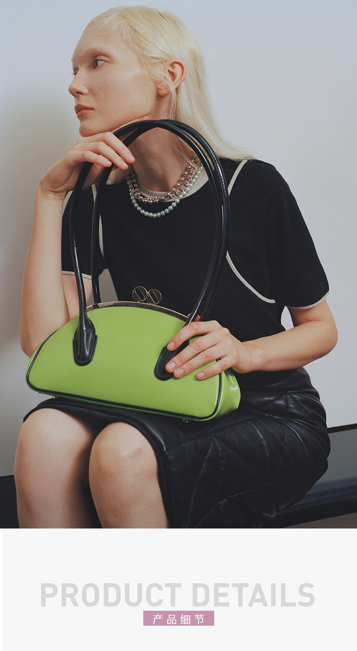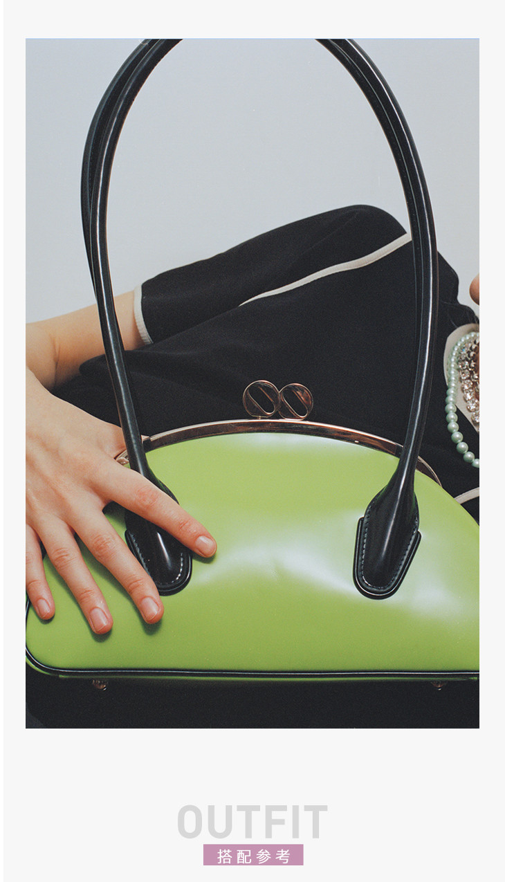 lost in echo 原创设计师品牌 保龄球口金手提包黑配绿色