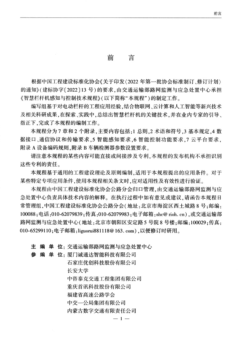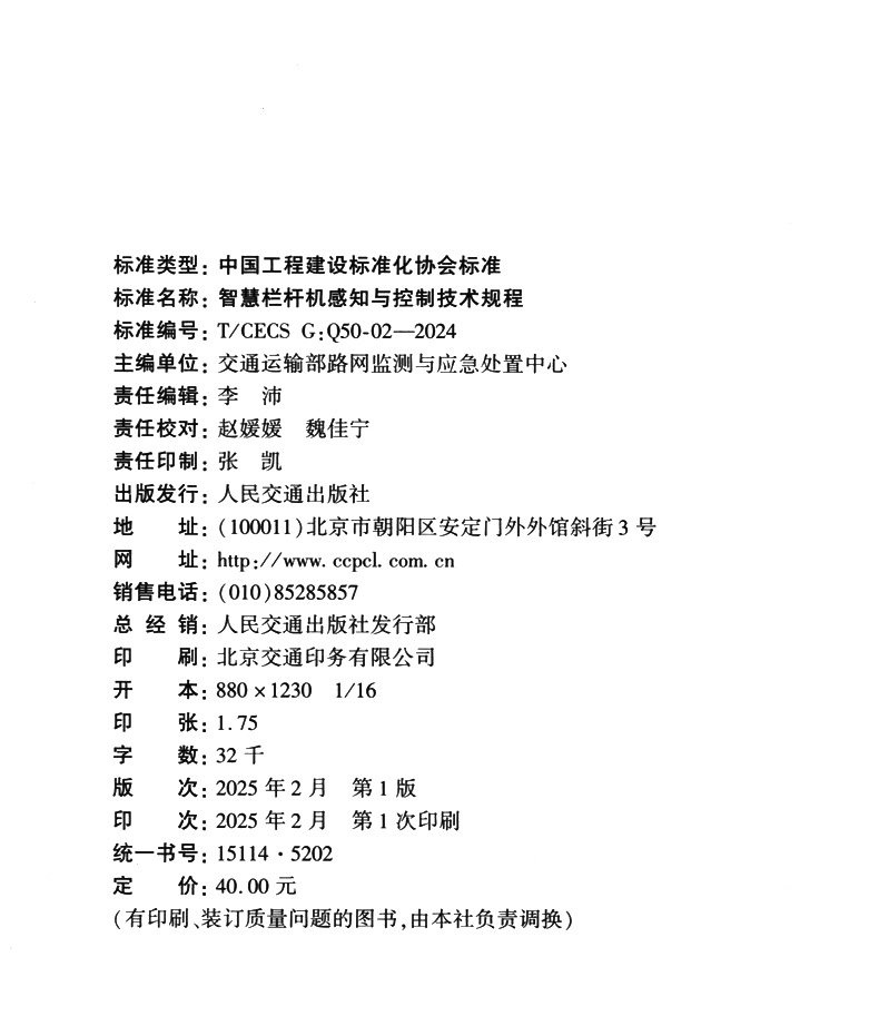 书名:智慧栏杆机感知与控制技术规程(T/CECS G:Q50-02—2024)