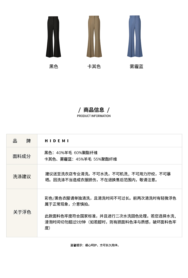 HIDEMI简约设计感微喇九分裤