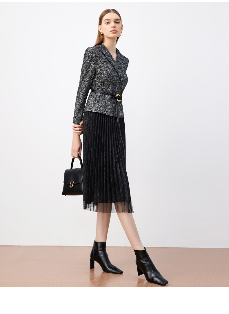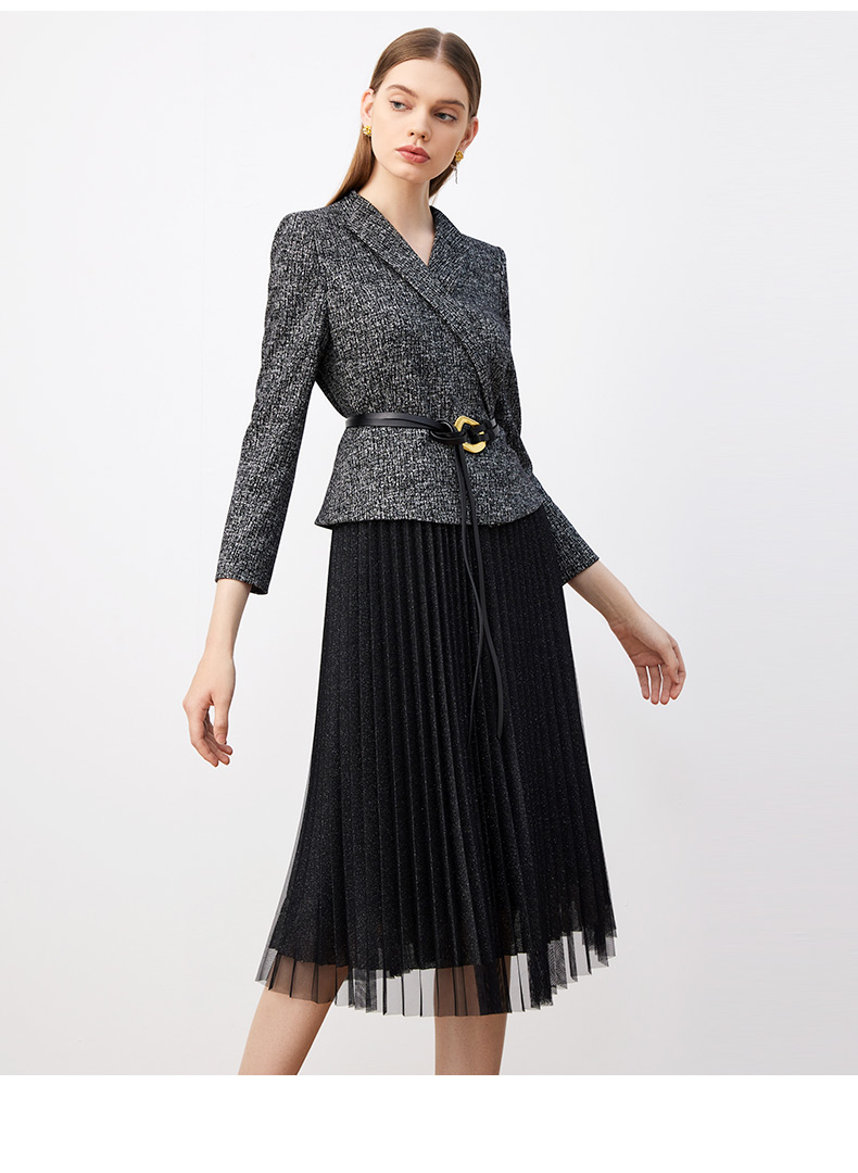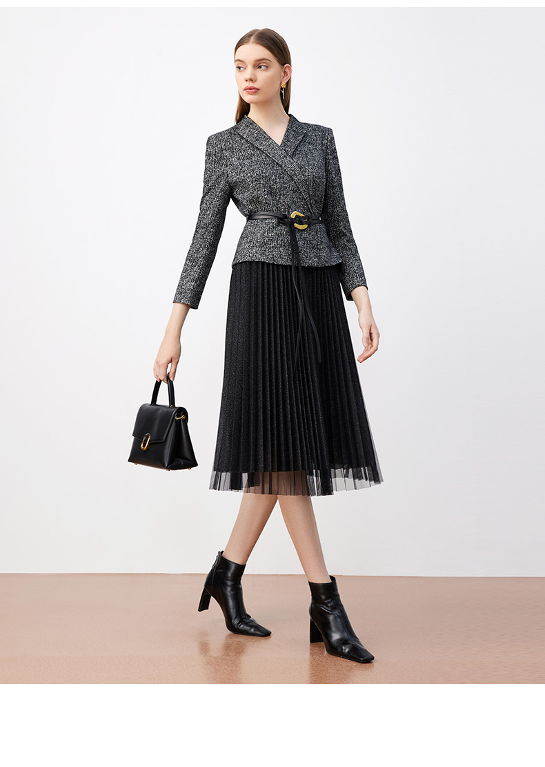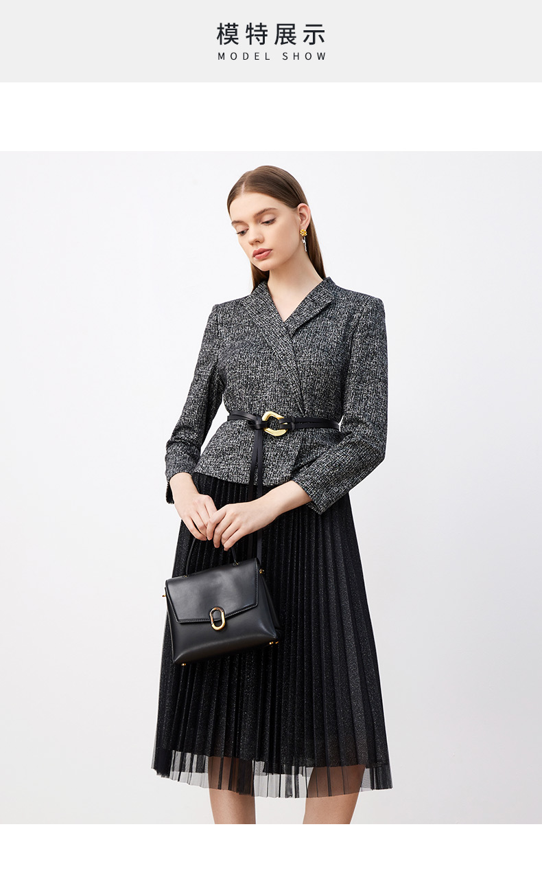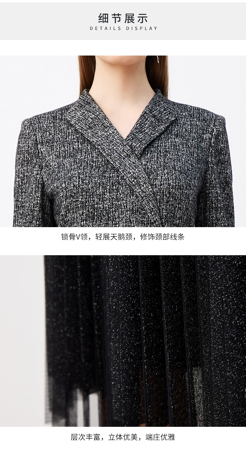 皮尔卡丹女装连衣裙秋季新款商务宴会通勤假两件裙子P3367E3836B3
