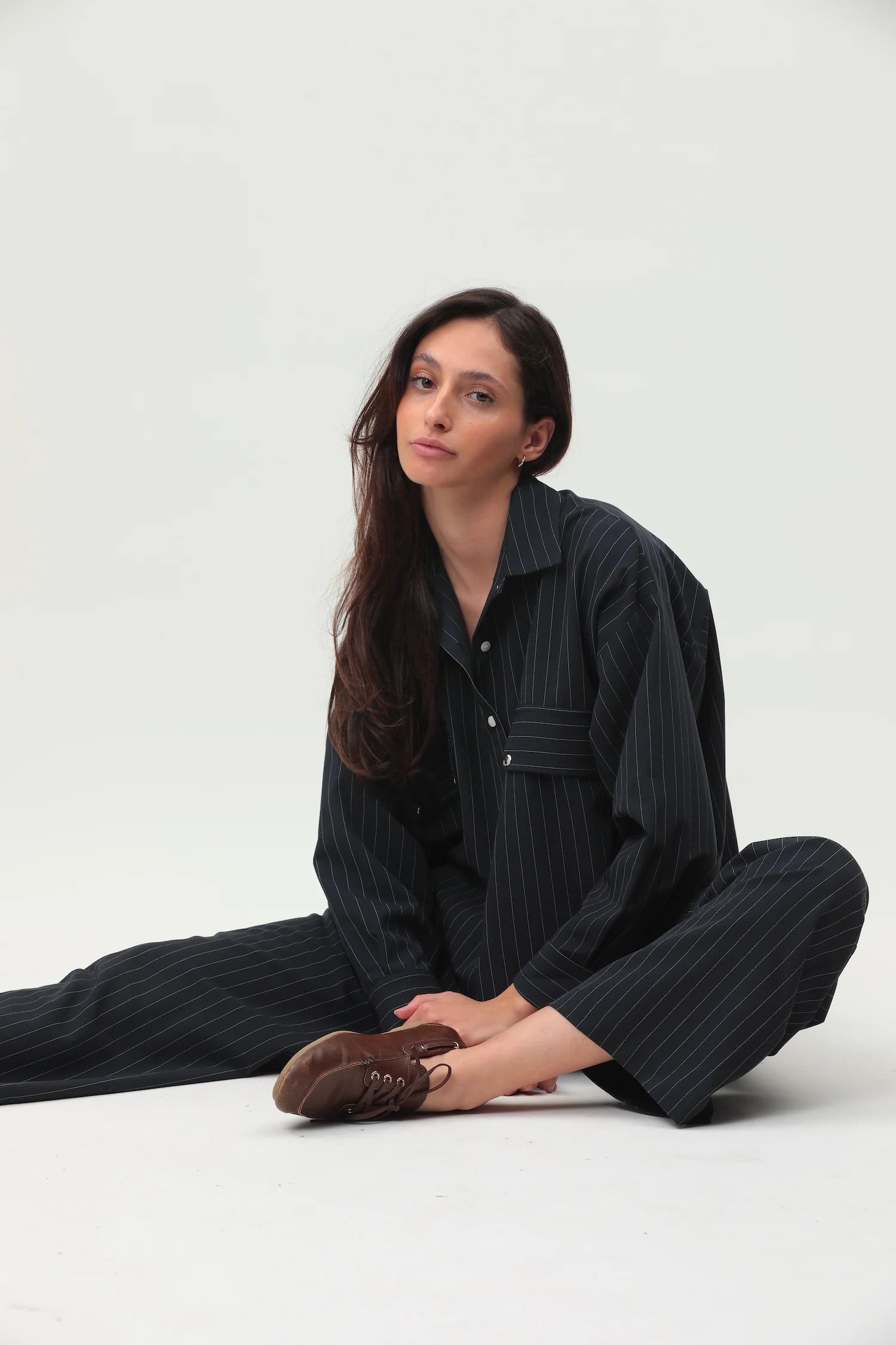 Ginette Garde ANGELE衬衫 / GABRIEL阔腿裤-藏青条纹