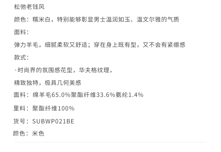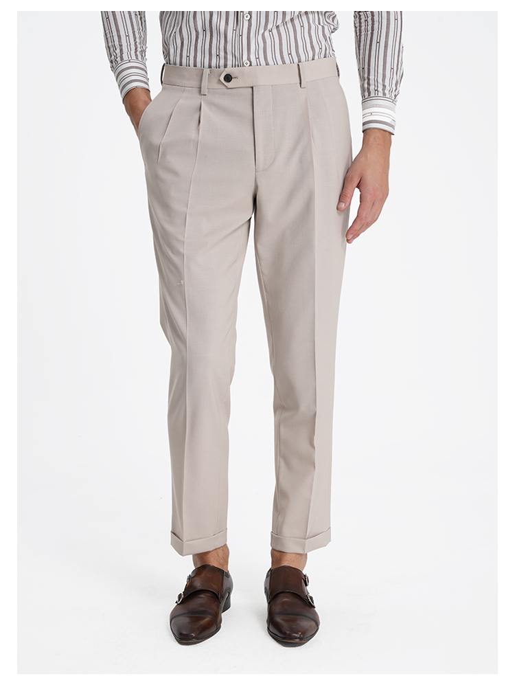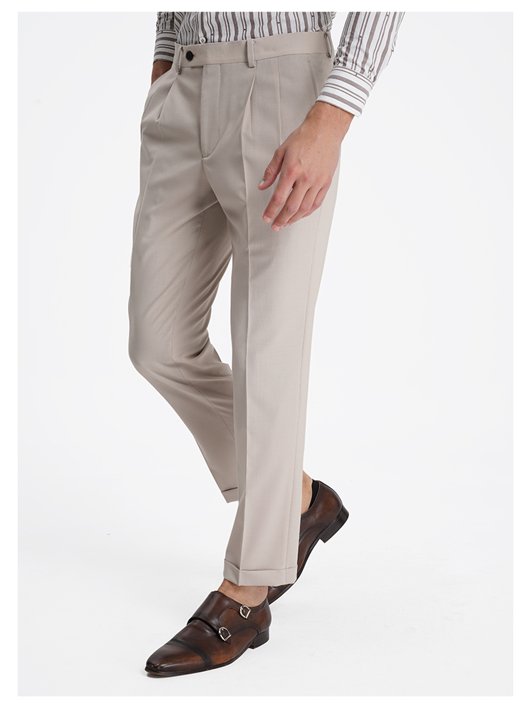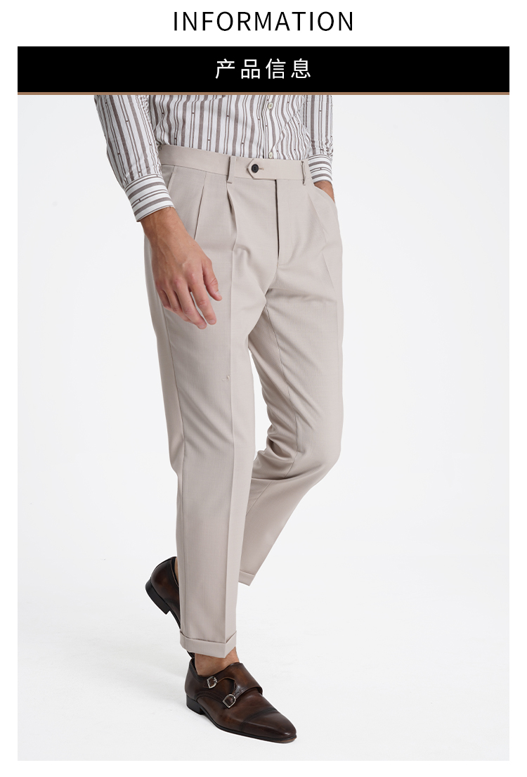 callisto松弛系列老钱风糯米白绵羊毛混纺西裤