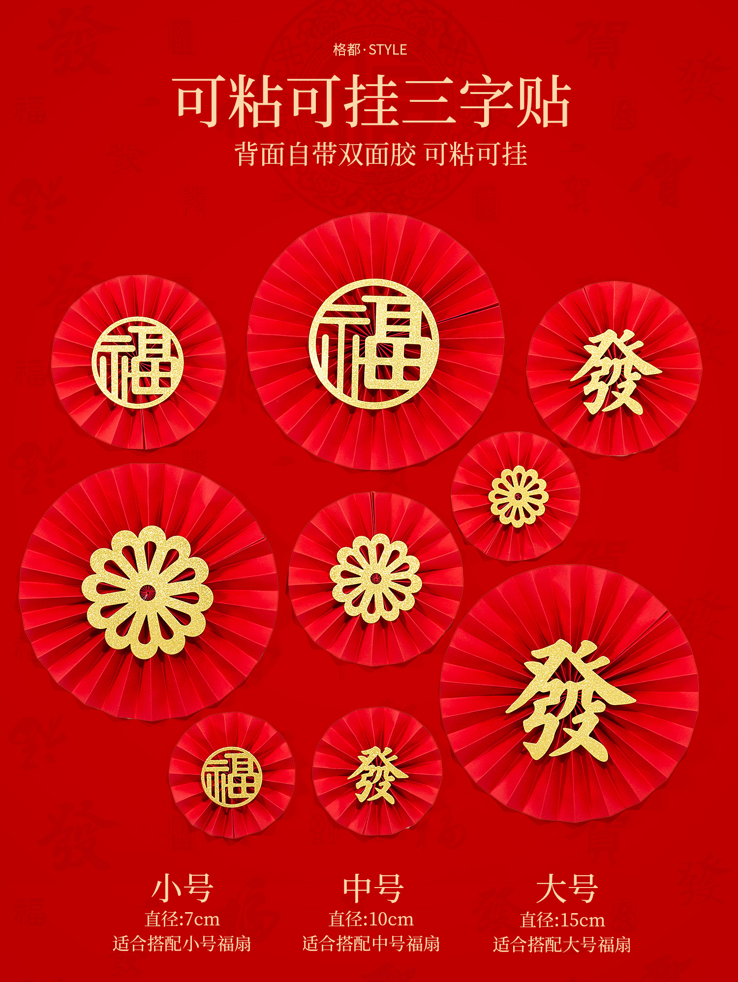 简装福扇、三字帖(可粘可挂)