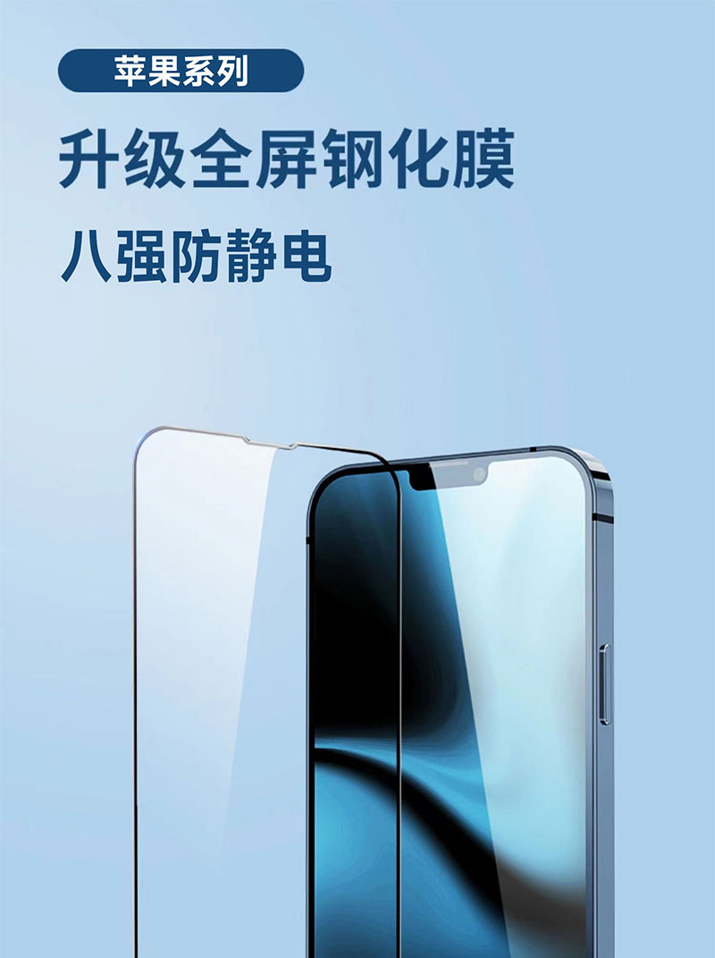 (苹果系列)八强膜防静电高铝全覆盖细边钢化膜苹果系列