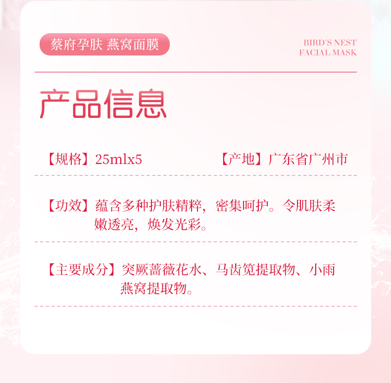 蔡府焕颜透亮面膜25ml*5片