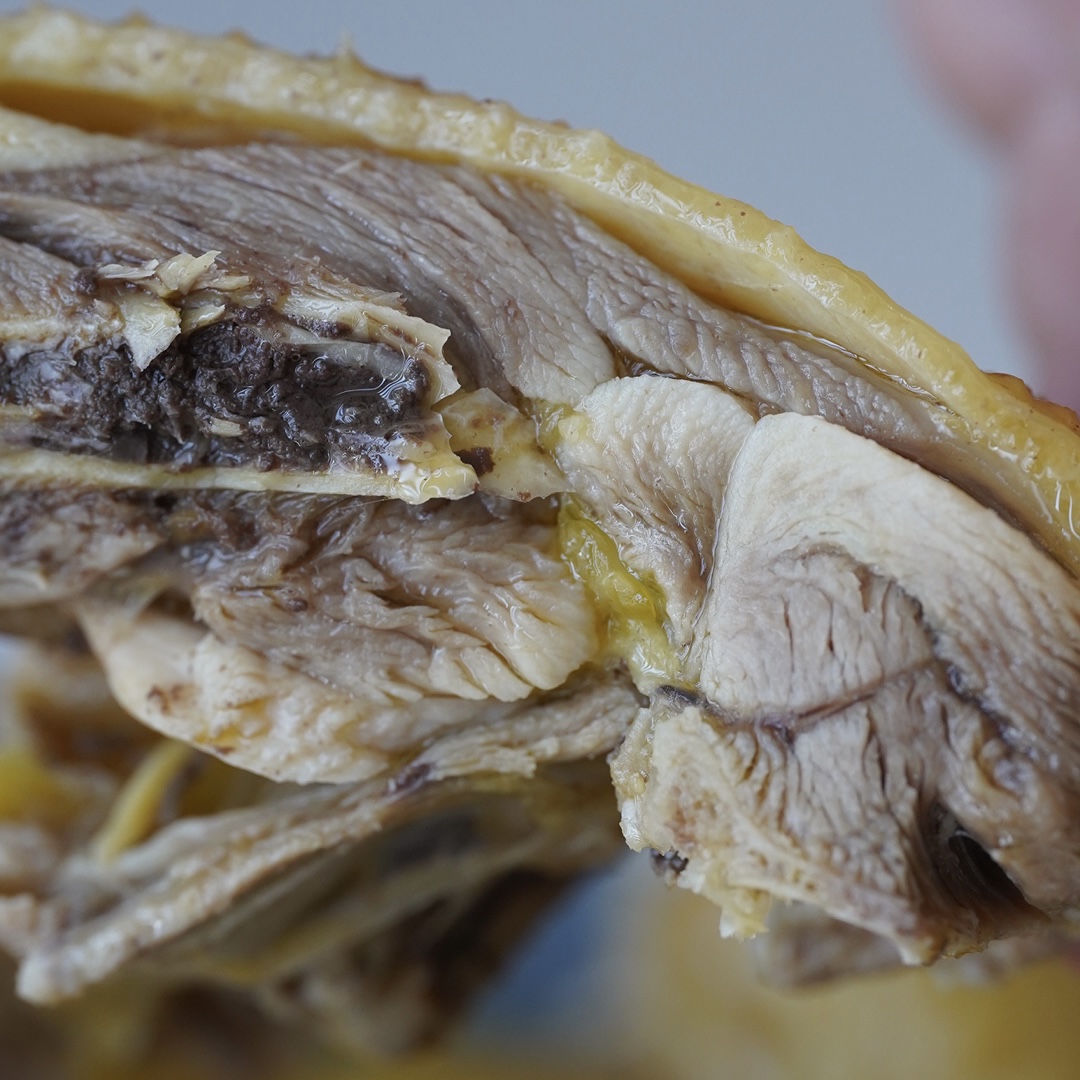 首先,我被这只鸡的劲道震惊。这是一只不好惹的、难咬的鸡。但是越咬越香。两广爱吃鸡,客家菜中有“无鸡不清”的说法。这只鸡的品种是河田鸡,位列世界五大名鸡之中,生长于果园、竹山、松林,鸡浑身有使不完的劲儿。放养在山野的河田鸡,飞扑奔跑,爬树上房,威风异常。