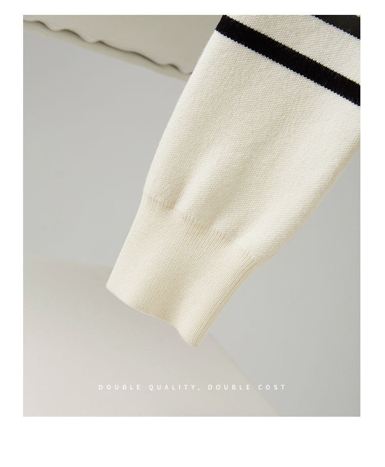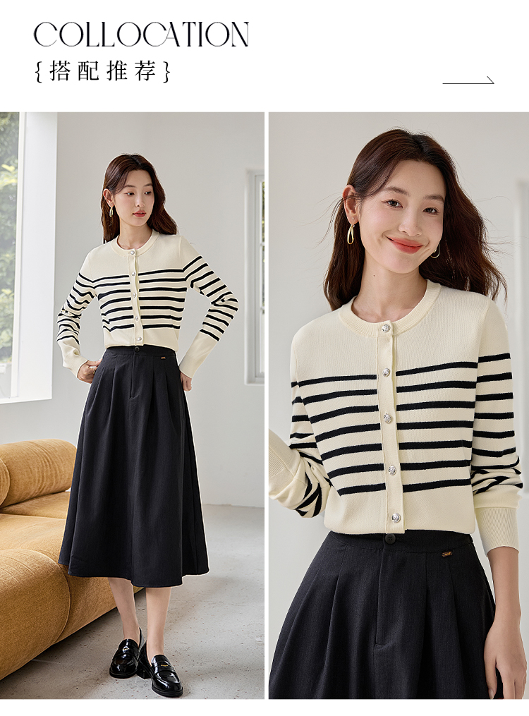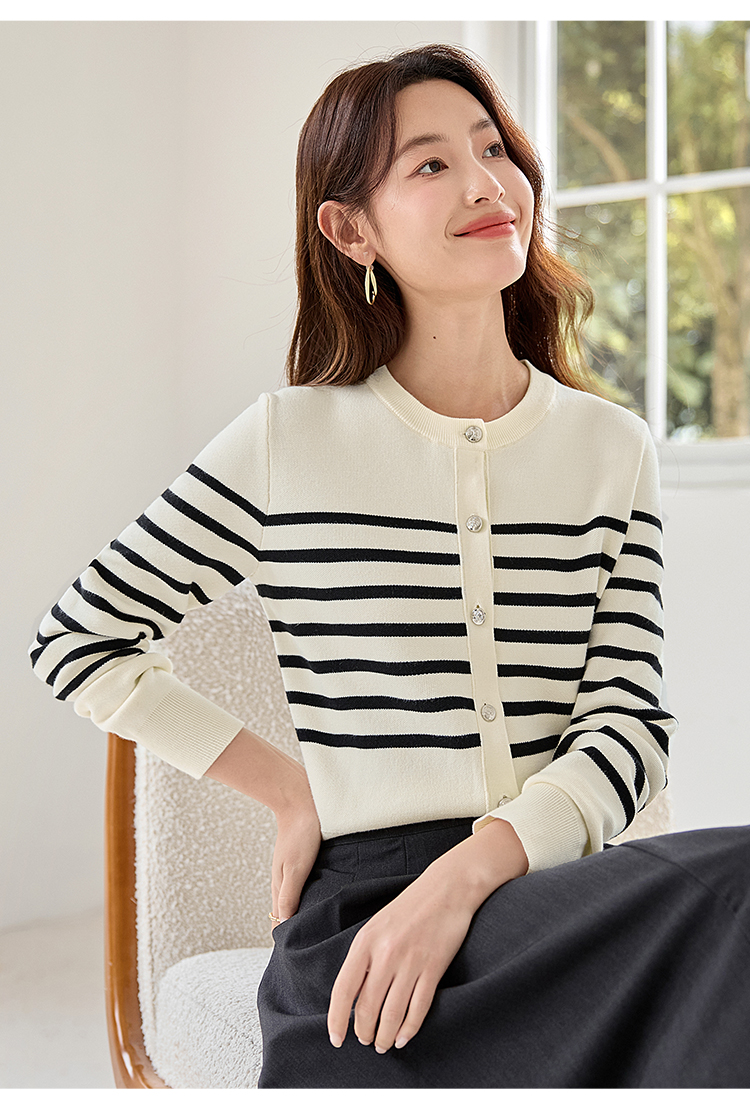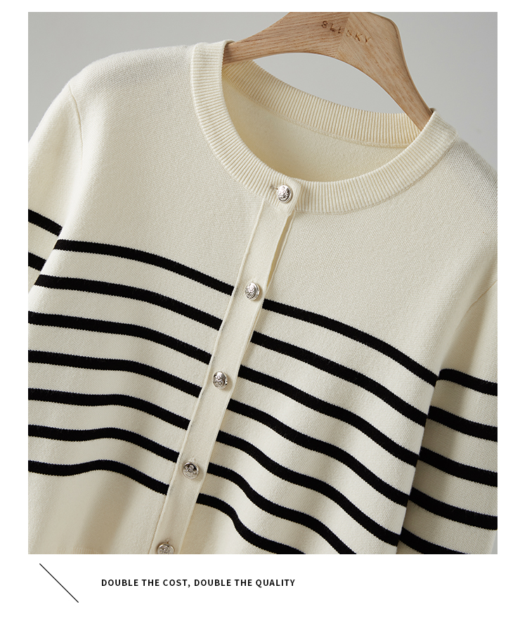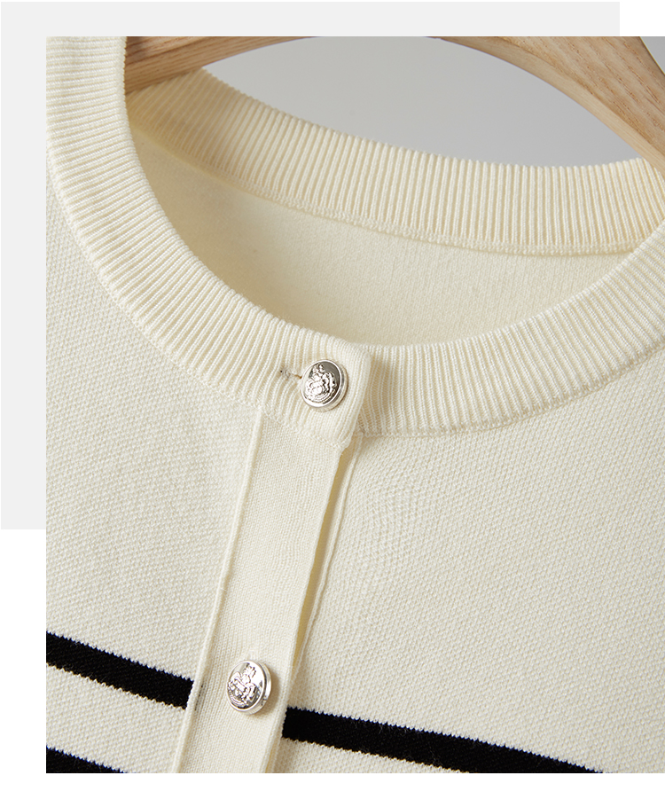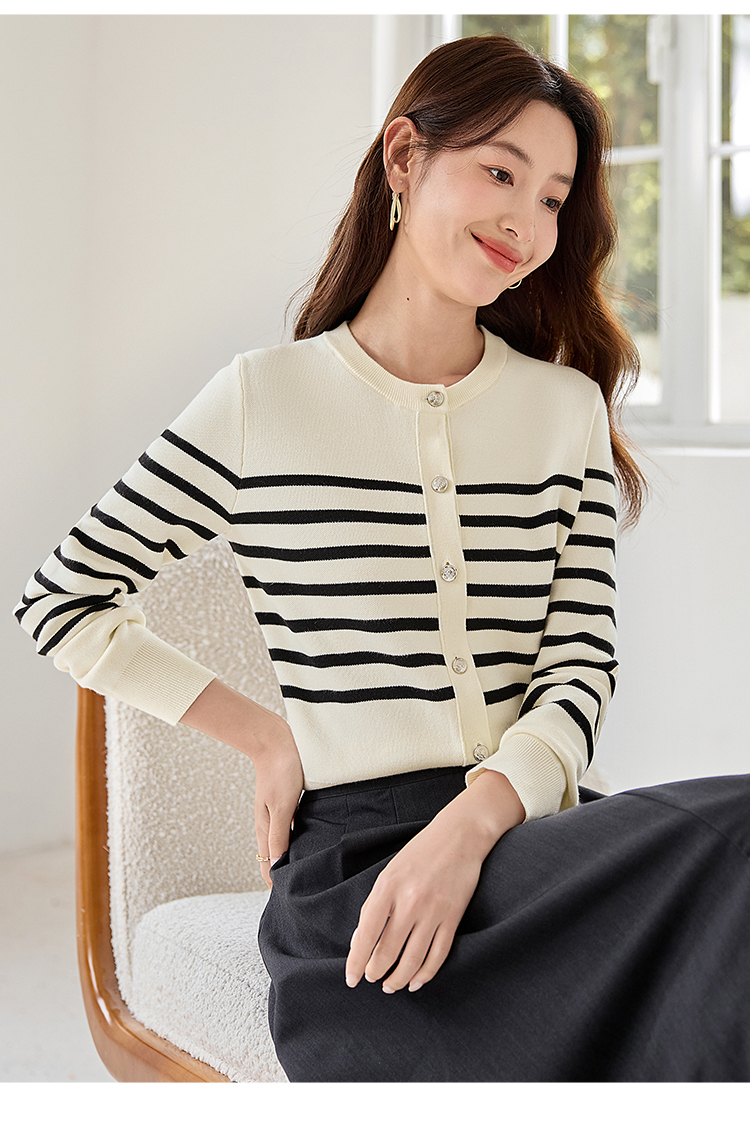 【年终特卖】熙世界小香风条纹针织开衫2025年秋季新款休闲圆领法式复古上衣