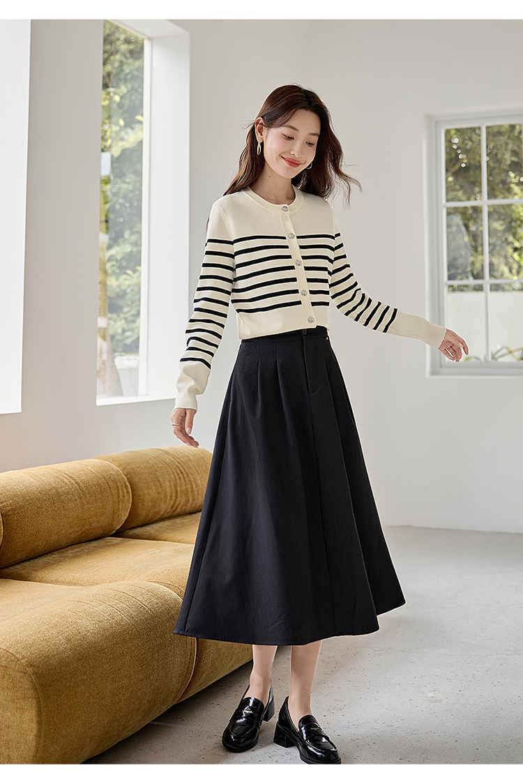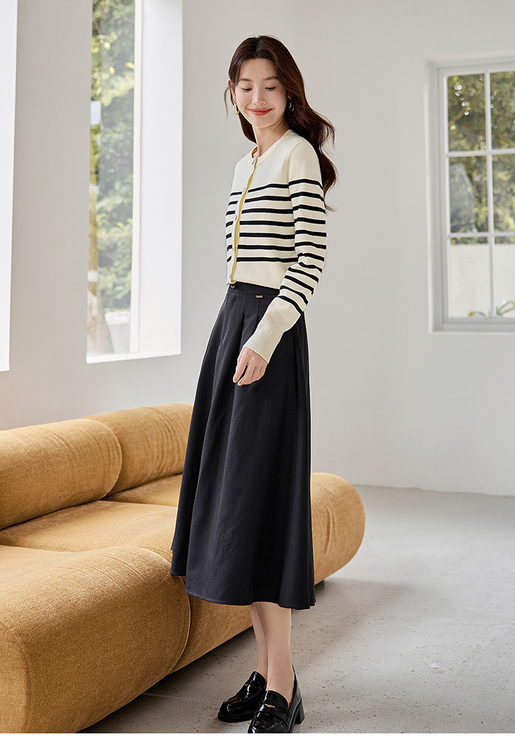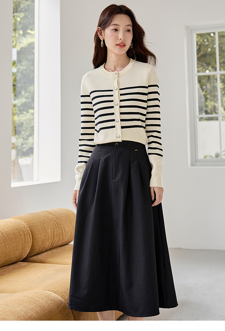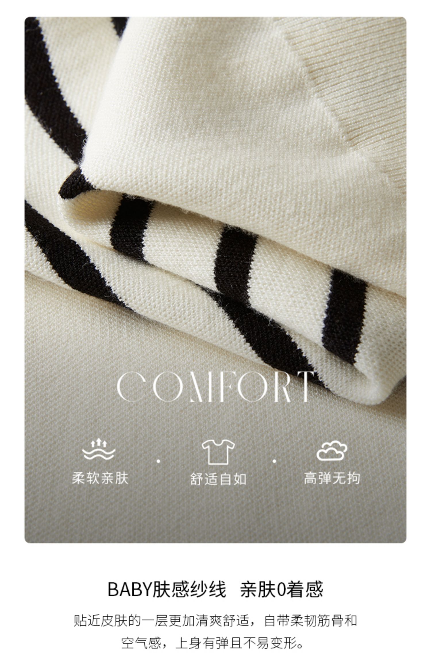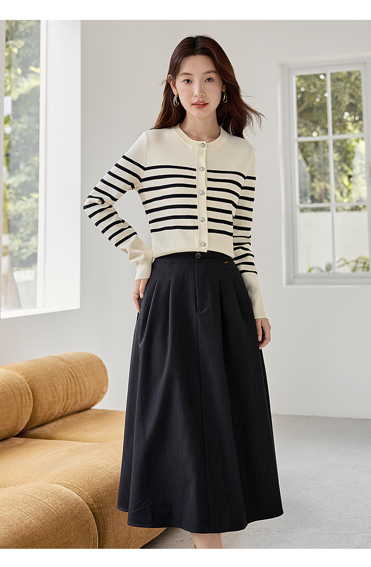 【年终特卖】熙世界小香风条纹针织开衫2025年秋季新款休闲圆领法式复古上衣